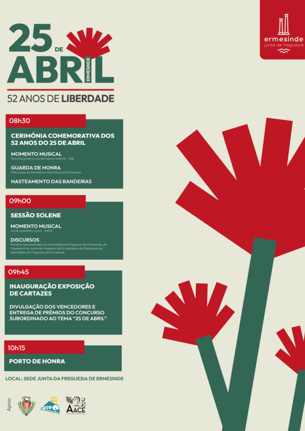 Ermesinde celebra a Liberdade no próximo sábado 🌹 No próximo dia 25 de abril, Ermesinde assinala os 52 ... -