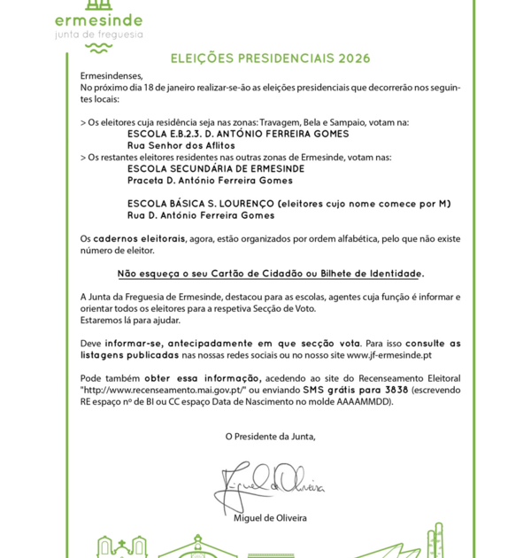 As secções de voto para as Eleições Presidenciais 2026 estão divididas por três locais: 👉 Escola E.B. 2/3 D. ...
