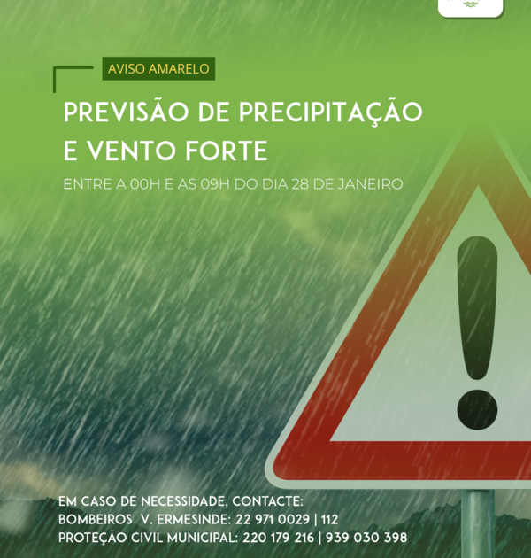 Entre as 𝟬𝟬𝗵𝟬𝟬 𝗲 𝗮𝘀 𝟬𝟵𝗵𝟬𝟬 do dia 28 de janeiro, prevê-se a manutenção de precipitação e vento forte na Freguesia de ...