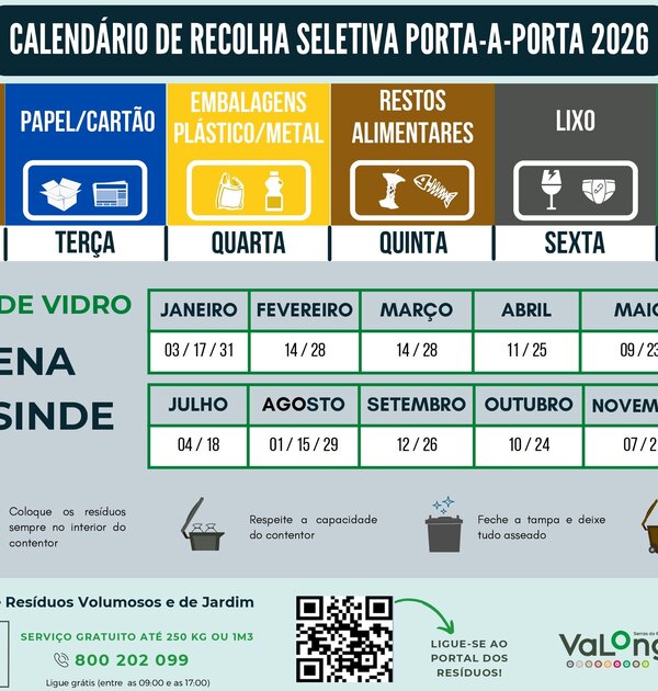 Calendário Recolha Seletiva Porta a Porta 2026
