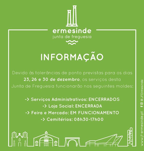 Nos dias 23, 26 e 30 de dezembro, os serviços desta Junta da Freguesia funcionarão nos seguintes ... -