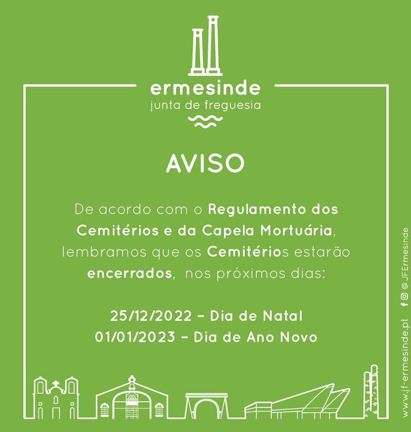 23 Dezembro 2022AVISO - Cemitérios | Natal e Ano Novo