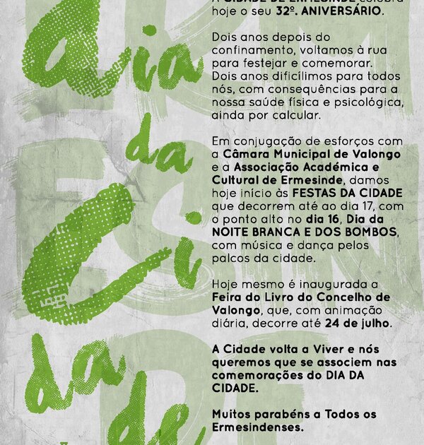 A Cidade de Ermesinde celebra hoje o seu 32º. Aniversário. Dois anos depois do confinamento, ... -