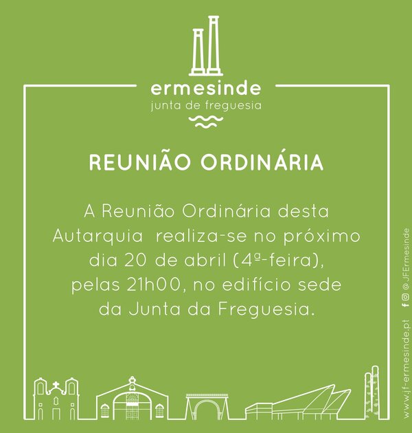 A Reunião Ordinária desta autarquia realiza-se no próximo dia 28 de abril, pelas 21h30, e será ... -