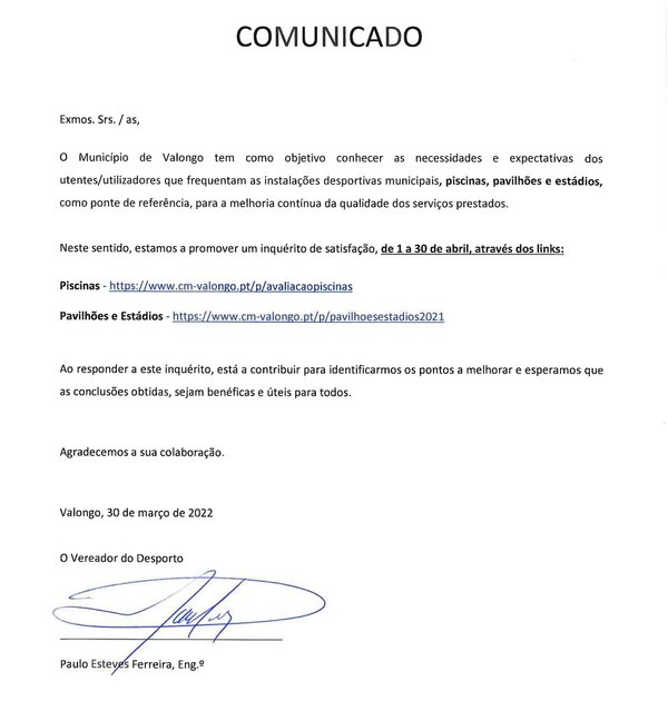 06 Abril 2022CMV | Inquérito Satisfação-Instalações Desportiva