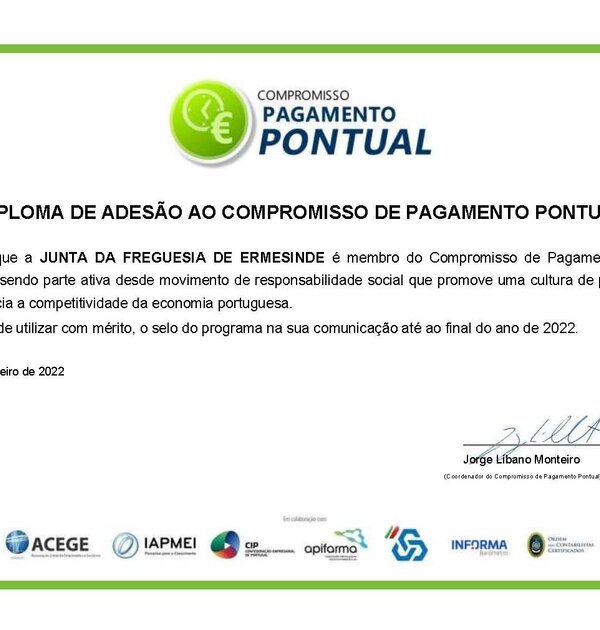 23 Fevereiro 2022Diploma de adesão ao compromisso de pagamento pontual