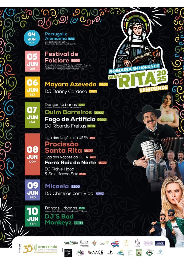 ✨ 𝑹𝒐𝒎𝒂𝒓𝒊𝒂 𝒅𝒆 𝑺𝒂𝒏𝒕𝒂 𝑹𝒊𝒕𝒂 2025 🗓 04 a 10 de junho todos os caminhos vão dar à 𝑹𝒐𝒎𝒂𝒓𝒊𝒂 𝒅𝒆 𝑺𝒂𝒏𝒕𝒂 𝑹𝒊𝒕𝒂 em Ermesinde. 🎉 Confira o ... -