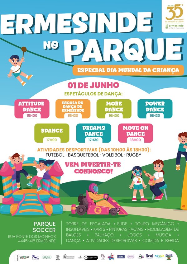 Ermesinde no Parque – Especial Dia Mundial da Criança '25 01 junho | 10h00 - 18h30 [domingo] Local: Parque Soccer / ...