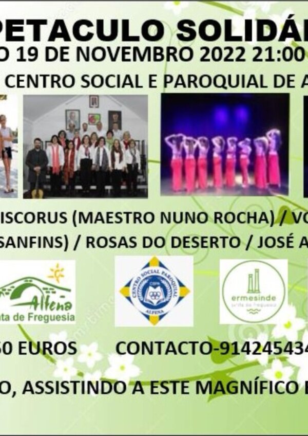 A Refood de Alfena/Ermesinde está a promover um evento solidário a realizar-se no dia 19 de novembro, pelas 21h00 no Polo II ... -