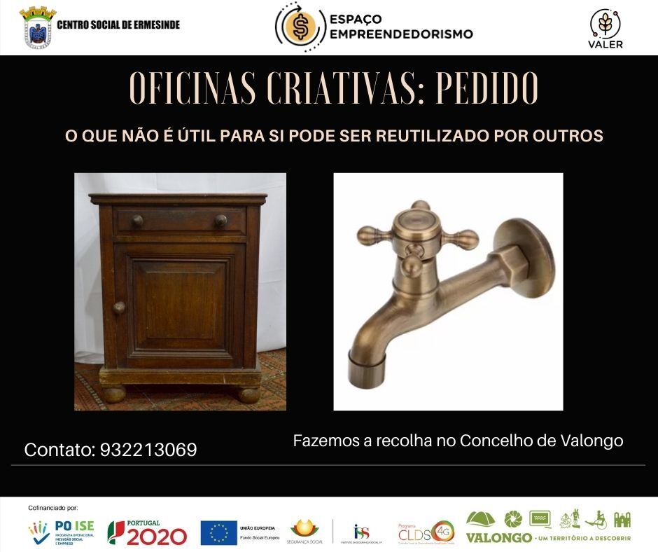 Destino dos objectos: oficina de transformação de resíduos destinada a público desempregado do concelho de Valongo.