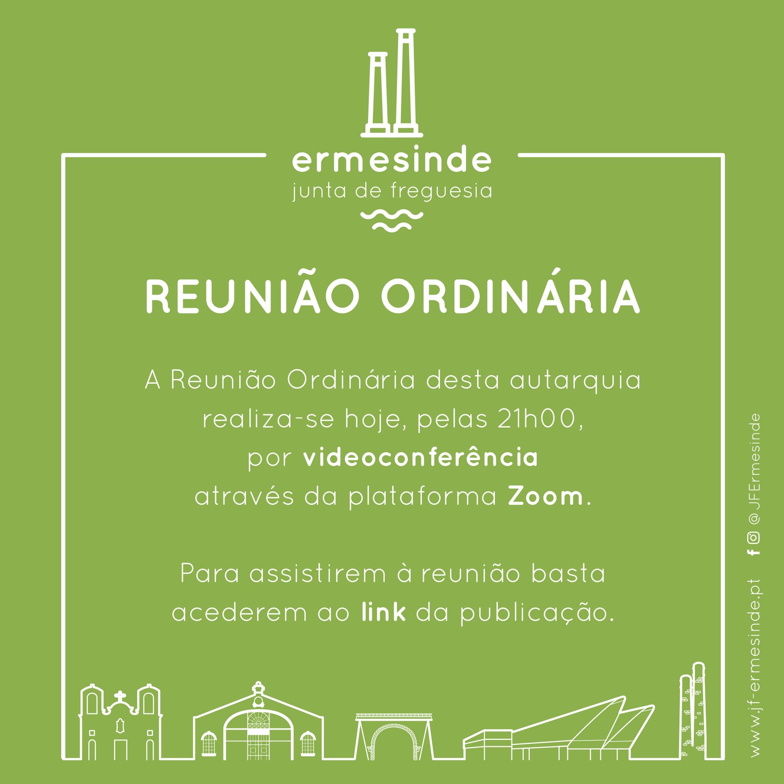 A Reunião Ordinária desta autarquia realiza-se hoje, pelas 21h00, por videoconferência através da plataforma zoom.