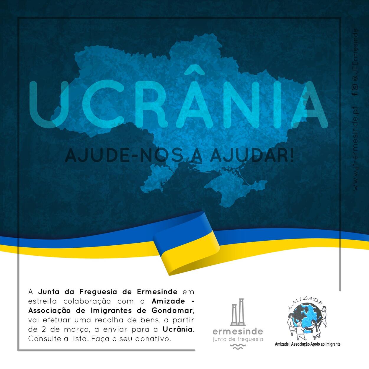 A Junta da Freguesia de Ermesinde em estreita colaboração com a Amizade - Associação de Imigrantes de Gondomar, está a efetuar uma recolha de bens a enviar para a Ucrânia.