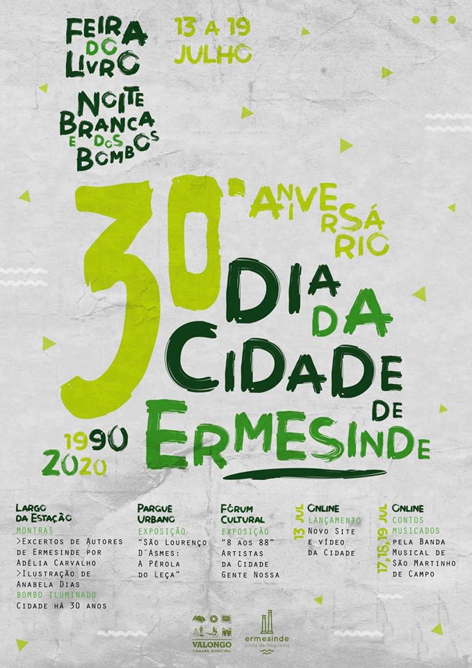 Conforme publicado em Diário da República, no dia 13 de julho de 1990, Ermesinde, na altura Vila, é elevada à categoria de Cidade. Tendo em consideração a atual situação de pandemia e a necessidade de se garantir a segurança de todos, adaptamos as iniciativas a esta nova realidade com uma série de apontamentos culturais alusivos à habitual Feira do Livro e Noite Branca e dos Bombos, sem que por isso se deixe de recordar os 30 anos da Elevação de Ermesinde a Cidade.