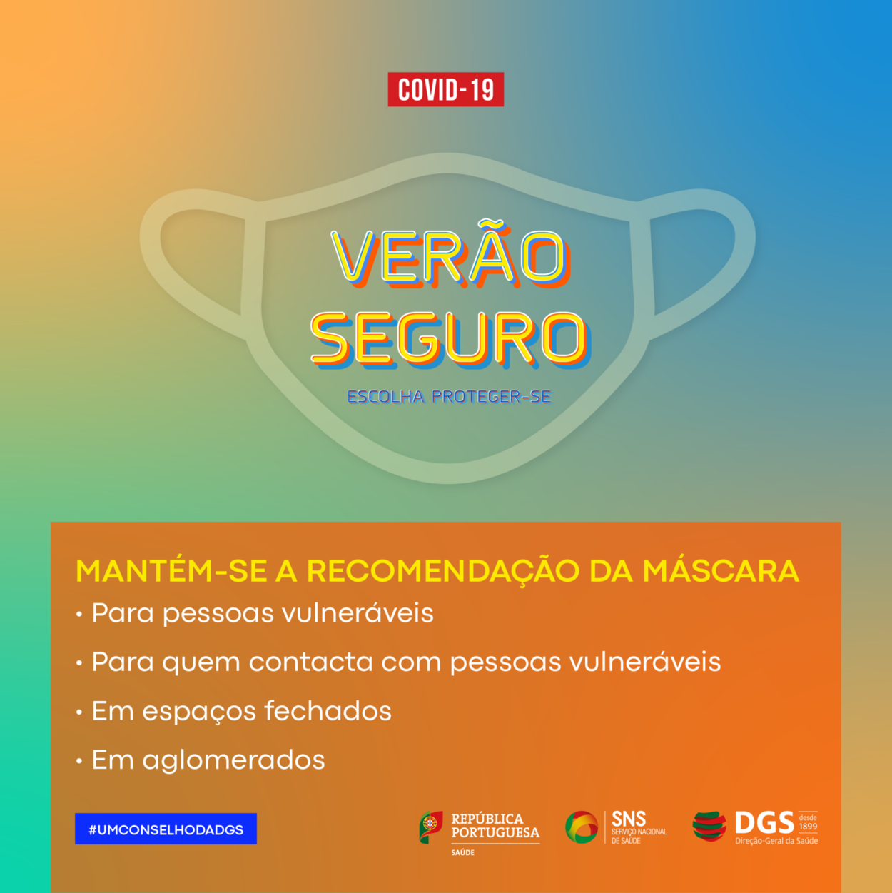 O mês de junho é o mês de arranque do período de Verão e da diversão associada aos Santos populares, face à atual situação epidemiológica, pretendemos continuar a incentivar a adoção de comportamentos de proteção, como a utilização da máscara em situações de grandes aglomerados.