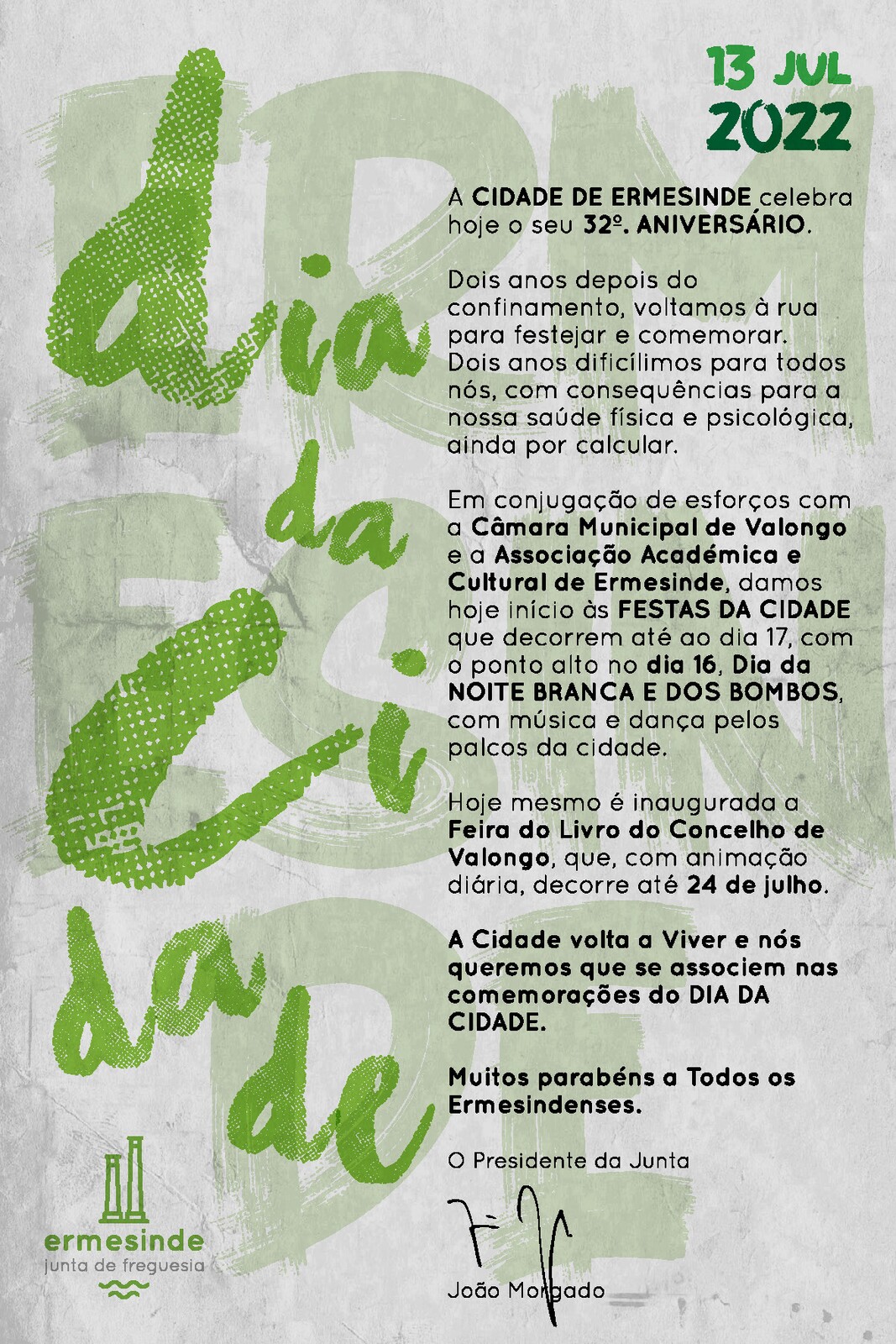 A Cidade de Ermesinde celebra hoje o seu 32º. Aniversário.