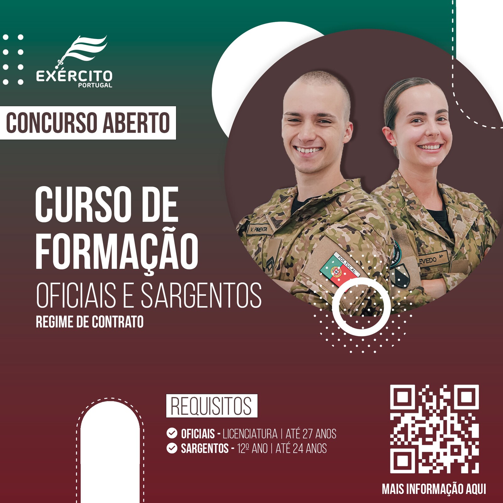 Com o intuito de fazer chegar mais e melhor informação aos potenciais candidatos, contemplando a interoperabilidade dos meios disponíveis na difusão da informação sobre o Recrutamento do Exército Português com as várias plataformas que a freguesia faz uso, o Exercito Portugues vem por este meio divulgar o que versam o que é essencial de como “ser” Exército, bem como informação relativa ao processo de candidatura, cujas oportunidades de emprego surgem com periocidade mensal e que poderão disponibilizar a qualquer cidadão.