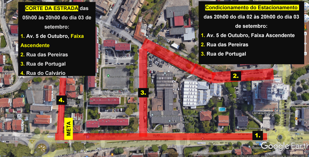 Conforme tem sido habitual nos últimos anos, o Município de Valongo vai receber uma etapa do 32.º GP de Ciclismo JN, a decorrer dia 3 de setembro de 2023, com partida na Avenida 5 de Outubro, em frente à confeitaria Sta. Justa, prevista pelas 12h00, e chegada prevista pelas 16h00 no mesmo local, pelo que se informa que irão ser efetuados os seguintes cortes/condicionamentos: