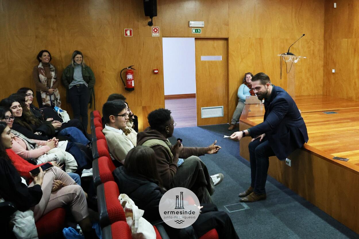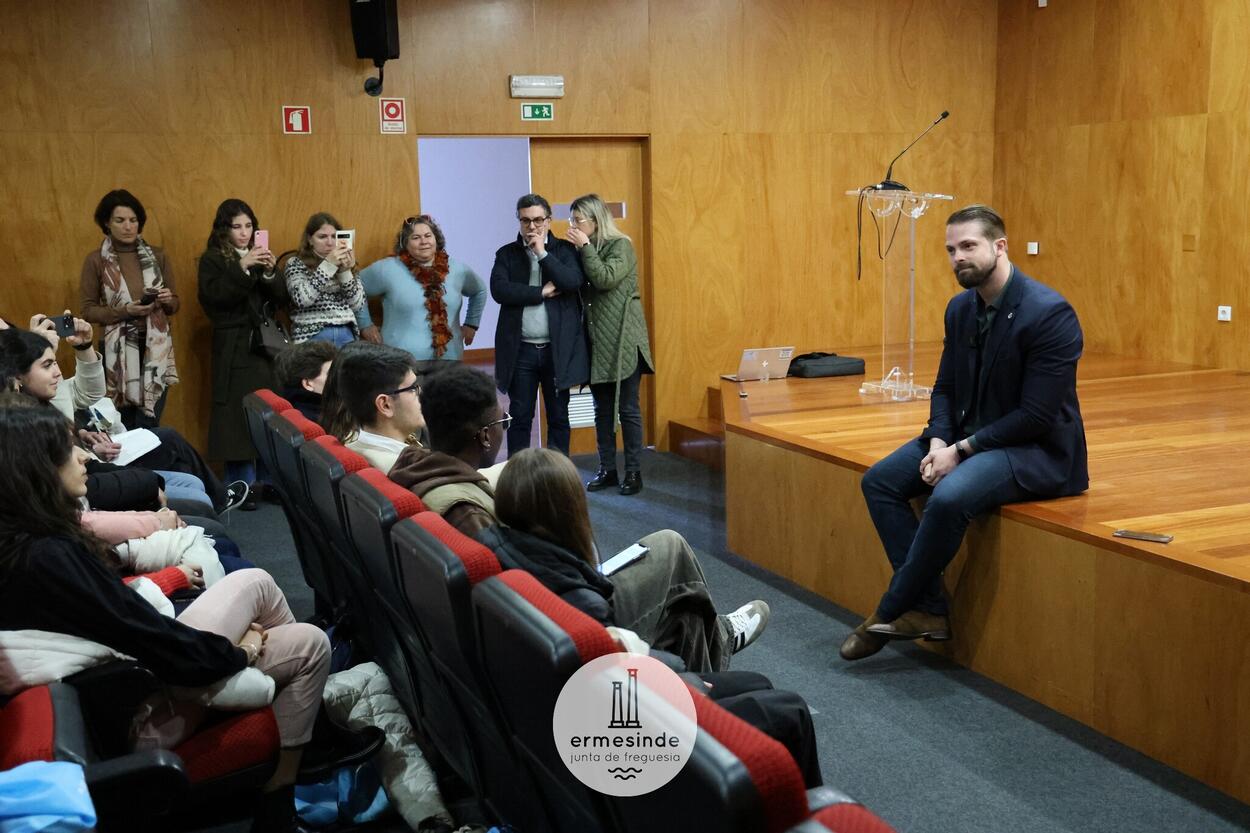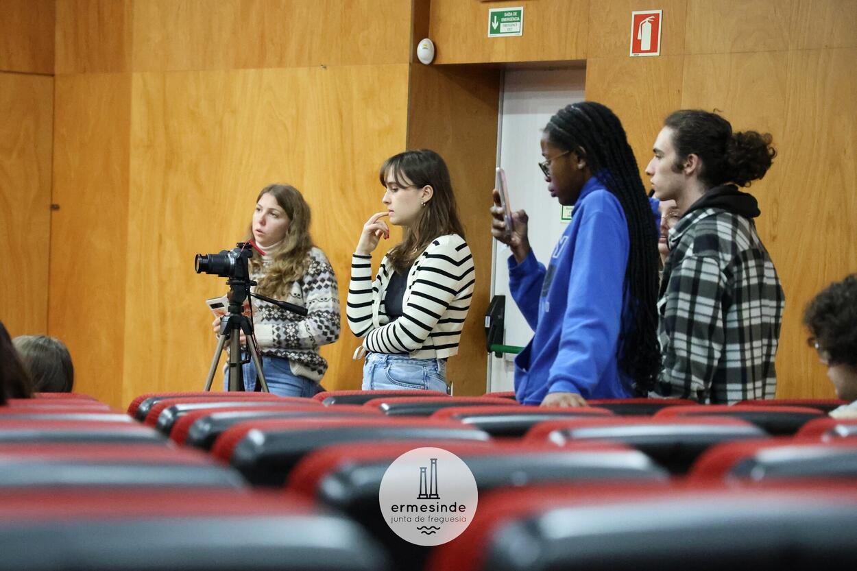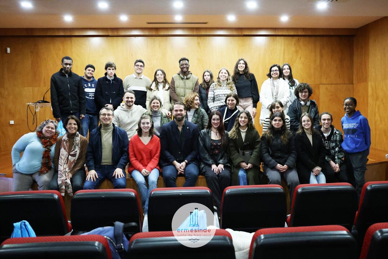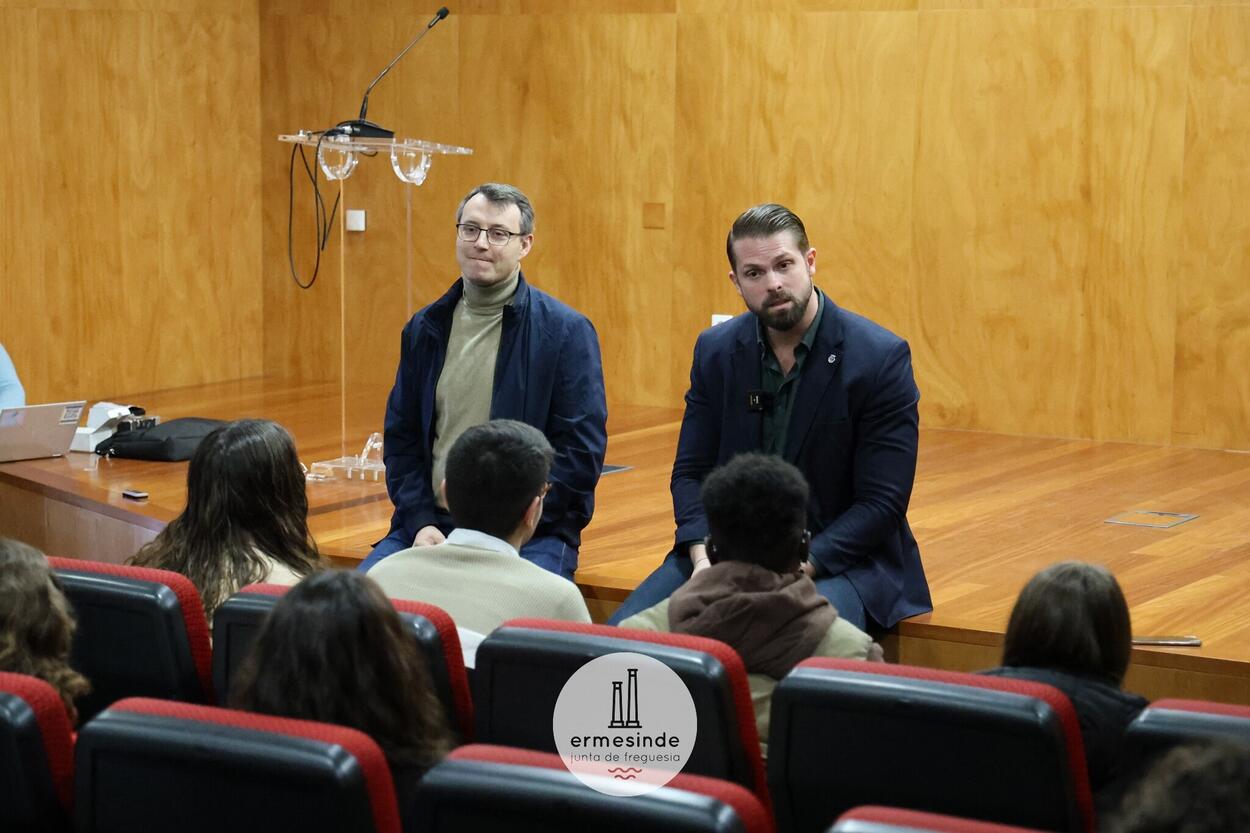 🟩O Presidente da Junta da Freguesia de Ermesinde Miguel Oliveira acompanhado do Tesoureiro Bruno Ascensão, recebeu nas instalações da Junta de Freguesia, jovens do projeto "Somos Decisores! Não somos apenas vozes!". Este projeto é desenvolvido pelo Município de Almada, em parceria com o Município de Valongo, a Associação Psicientífica e a Associação Novo Mundo Azul, no contexto do programa Erasmus +.