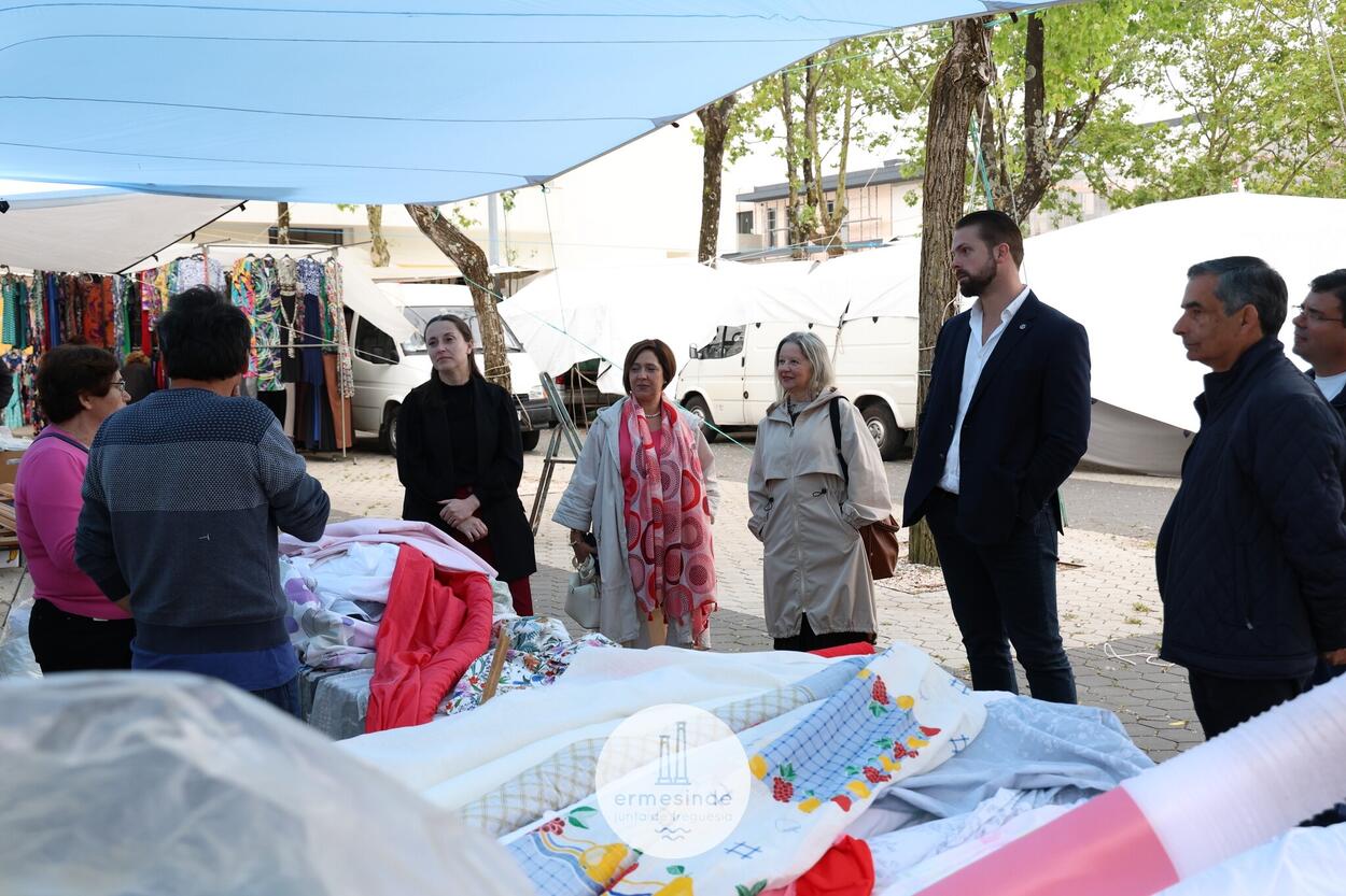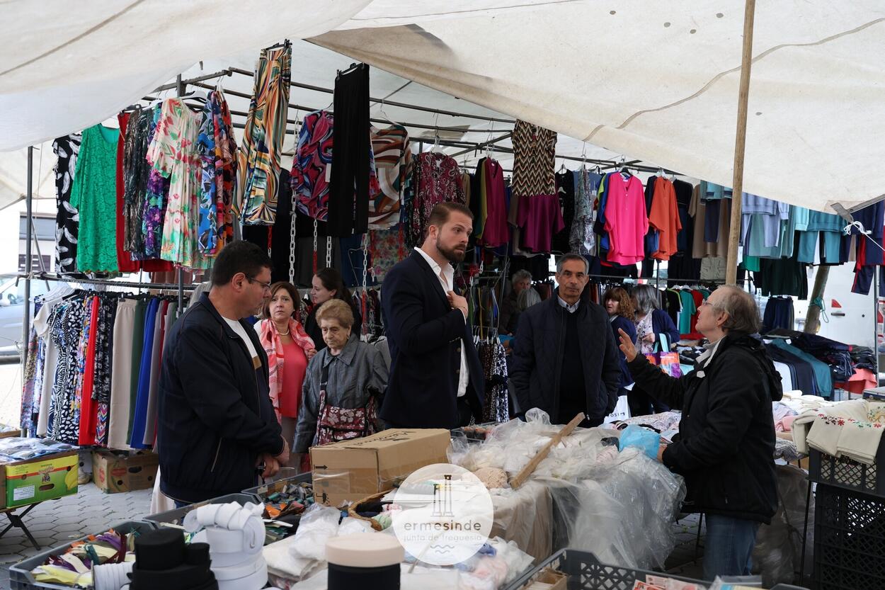 O Presidente da Junta de Freguesia de Ermesinde, Miguel Oliveira, acompanhado pelo seu Executivo e também pelo o Presidente da Associação de Feirantes do Distrito do Porto, Douro e Minho, Artur Andrade, e pelo Presidente da Associação de Feiras e Mercados da Região Norte, Fernando Sá, estiveram à conversa com os vendedores e respetivos fregueses.