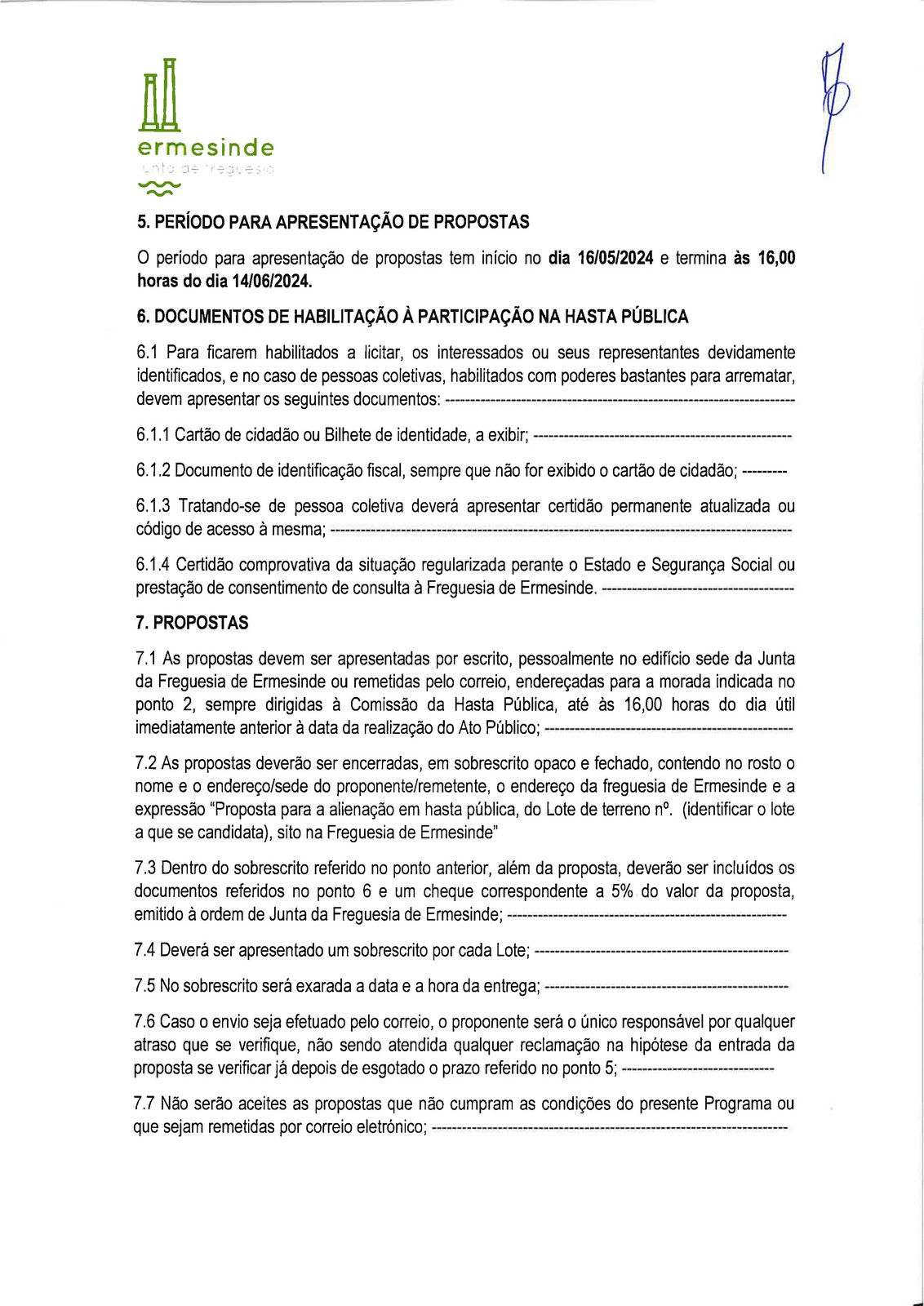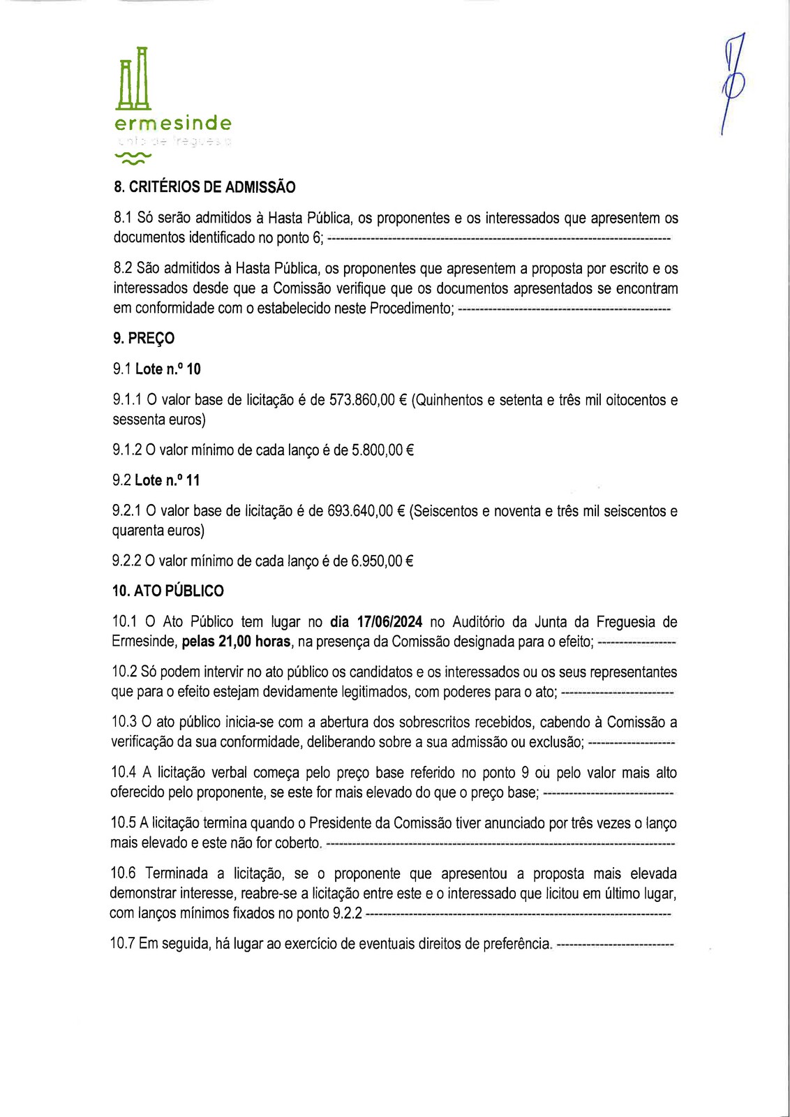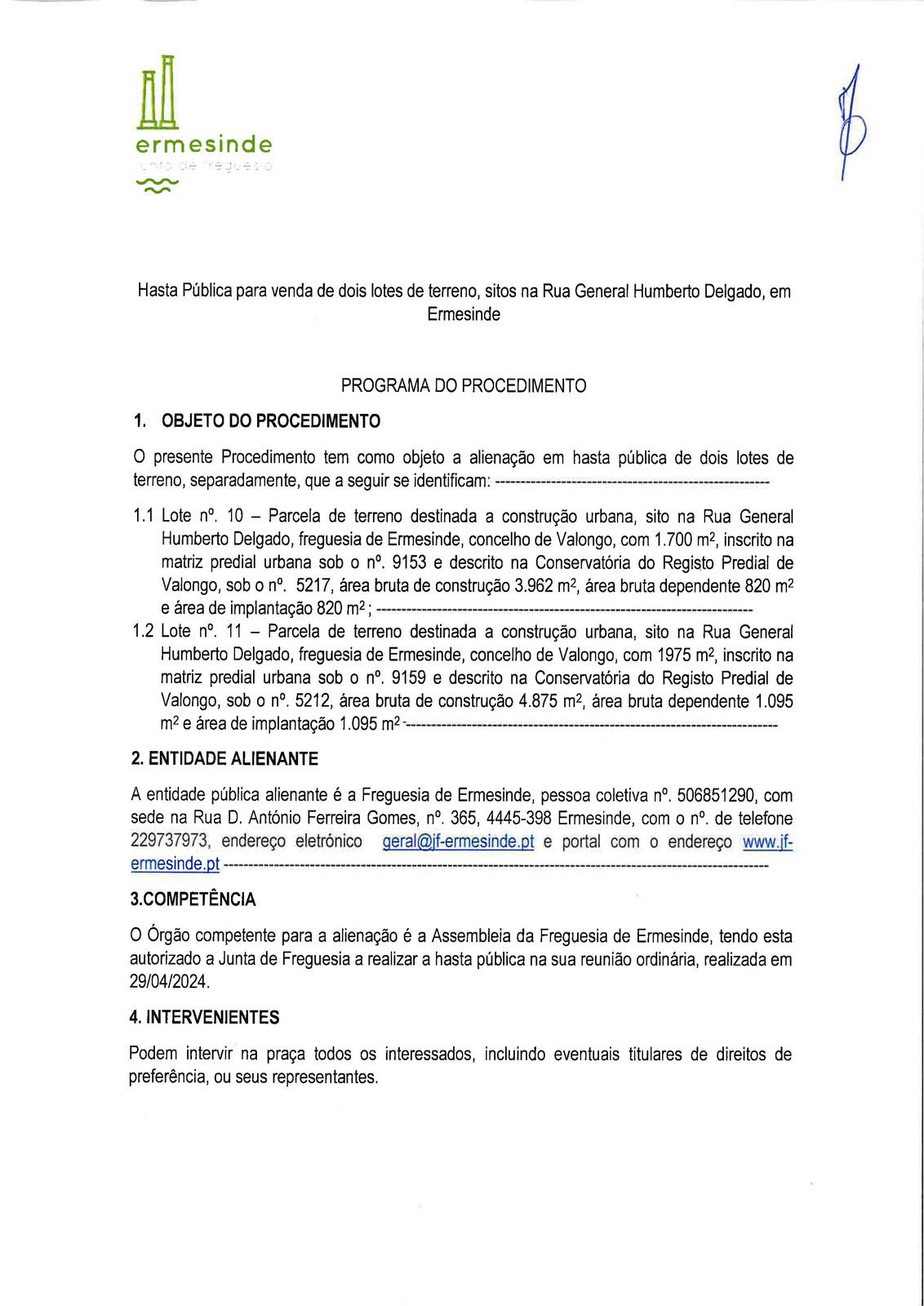 Hasta pública para venda de dois lotes de terreno, sitos, na Rua General Humberto Delgado em Ermesinde.