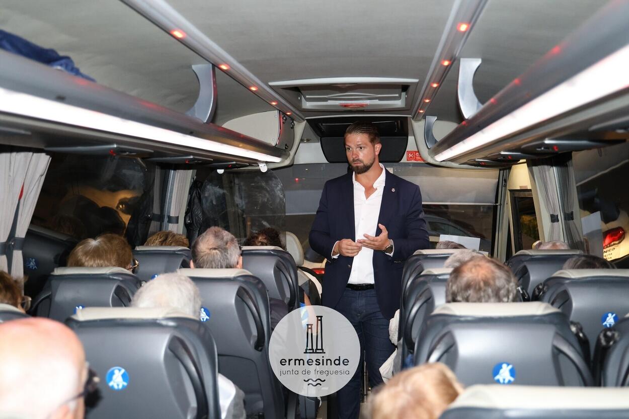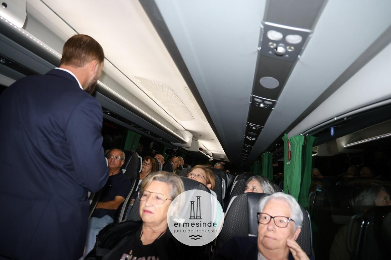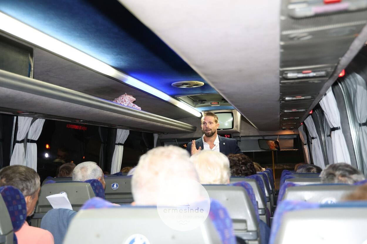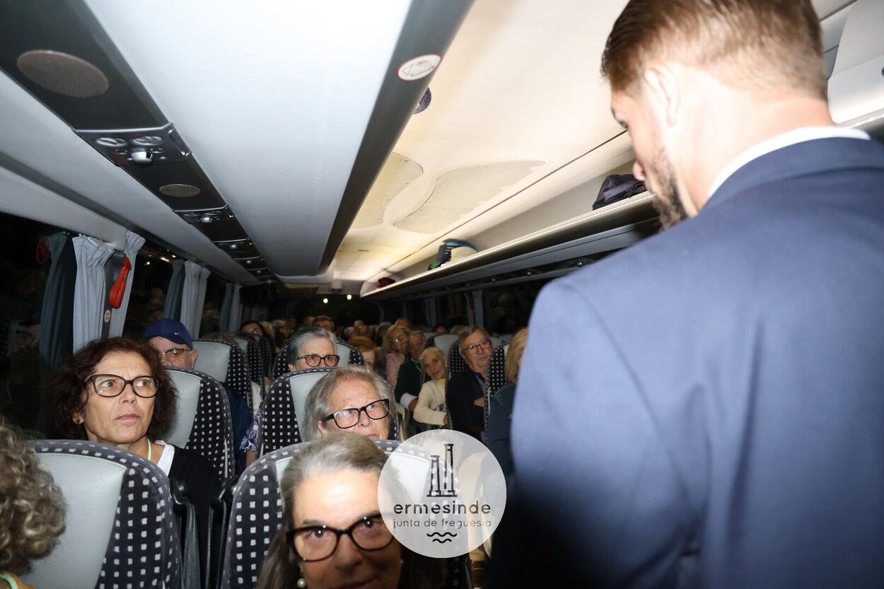 Ao raiar do Sol o Presidente da Junta de Freguesia de Ermesinde subiu a cada um, dos 15 autocarros, para desejar boa viagem aos cerca de 800 Ermesindenses inscritos no Passeio Sénior.
