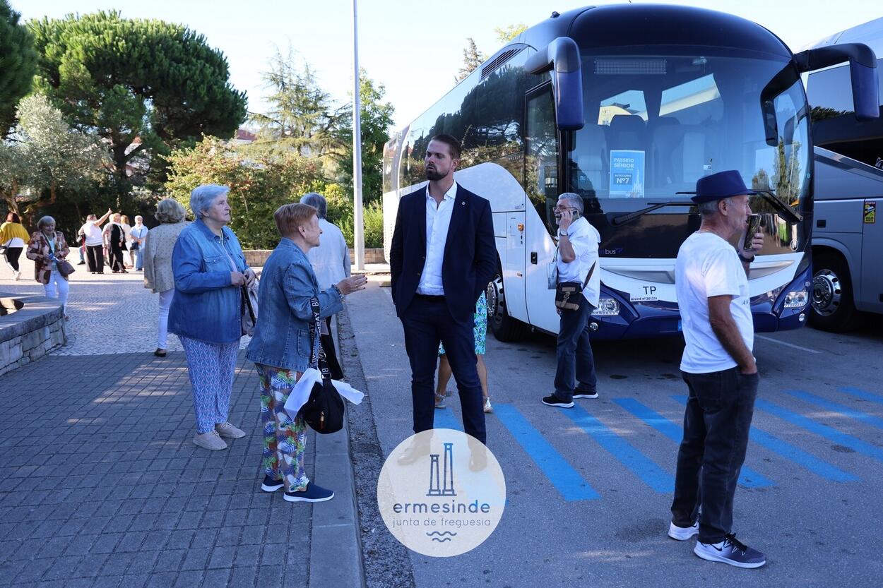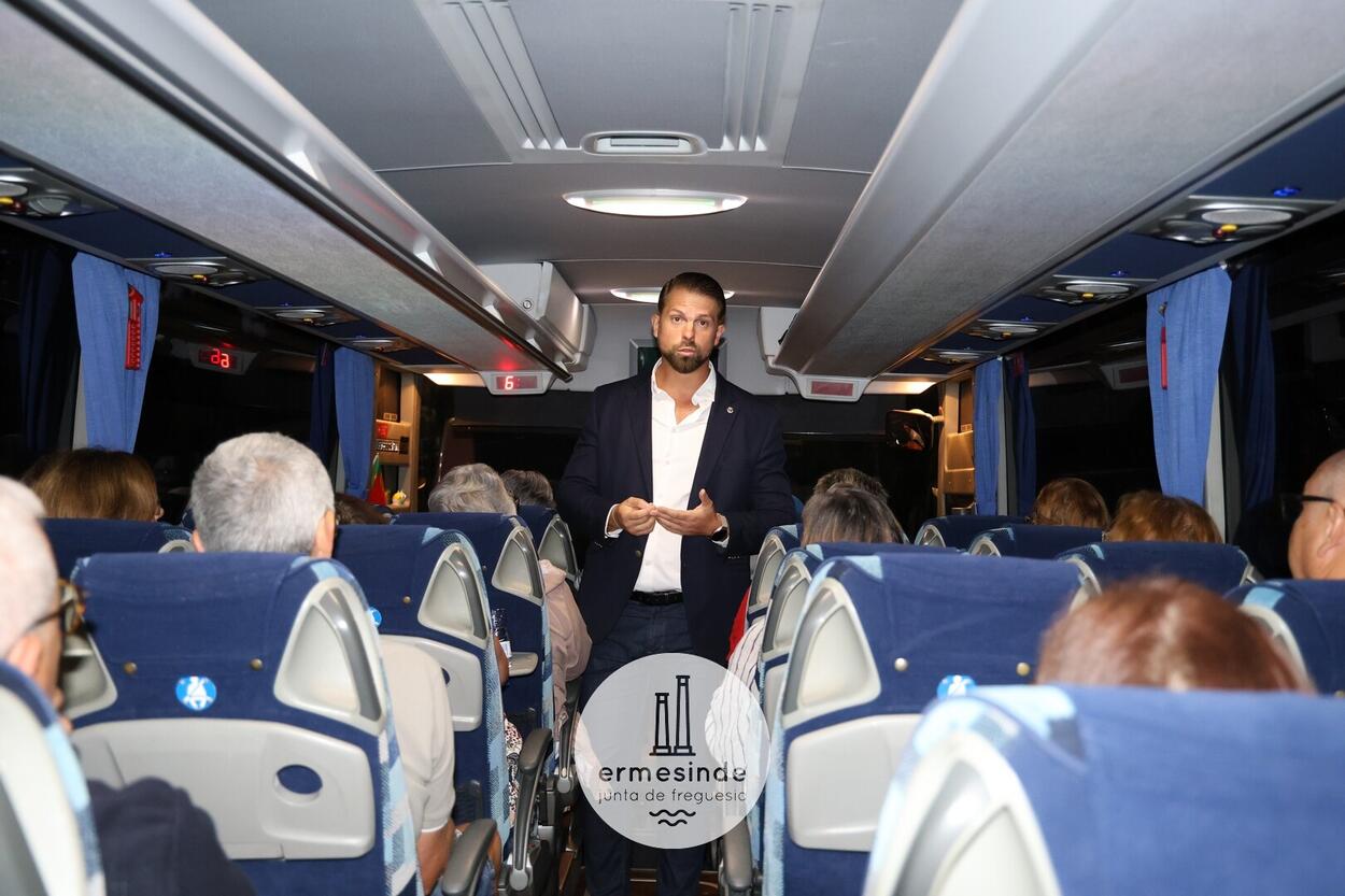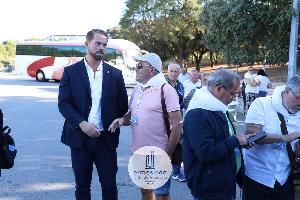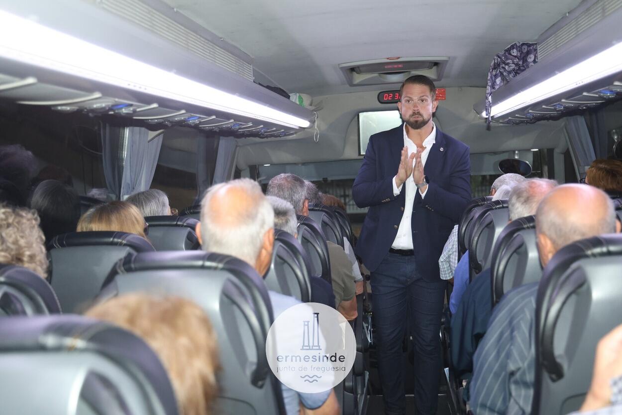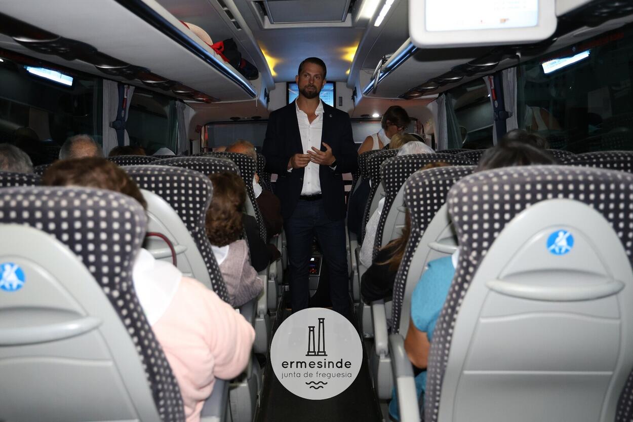 Ao raiar do Sol o Presidente da Junta de Freguesia de Ermesinde subiu a cada um, dos 15 autocarros, para desejar boa viagem aos cerca de 800 Ermesindenses inscritos no Passeio Sénior.