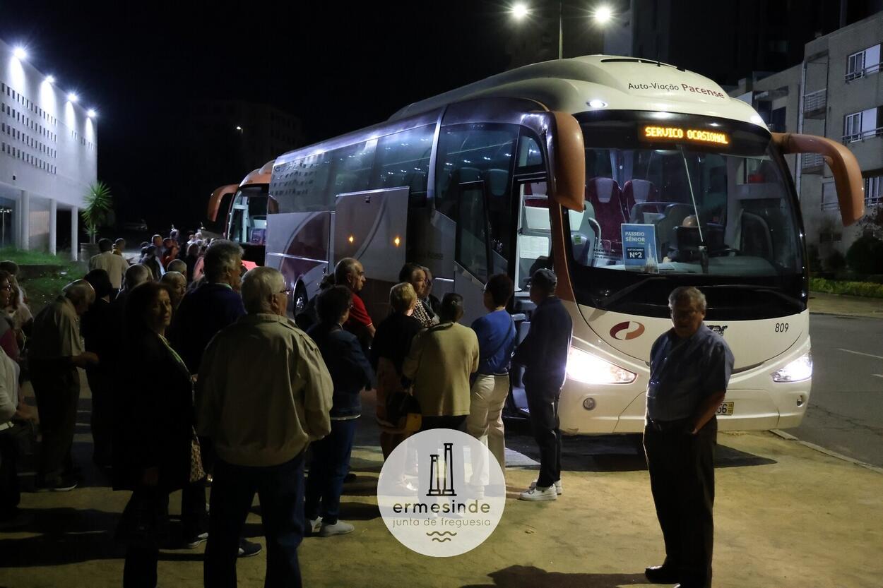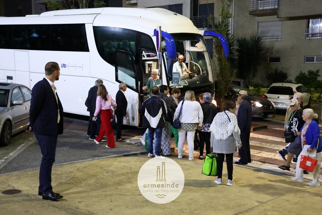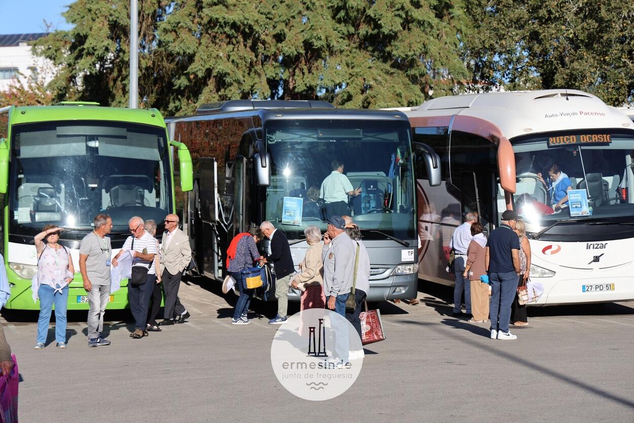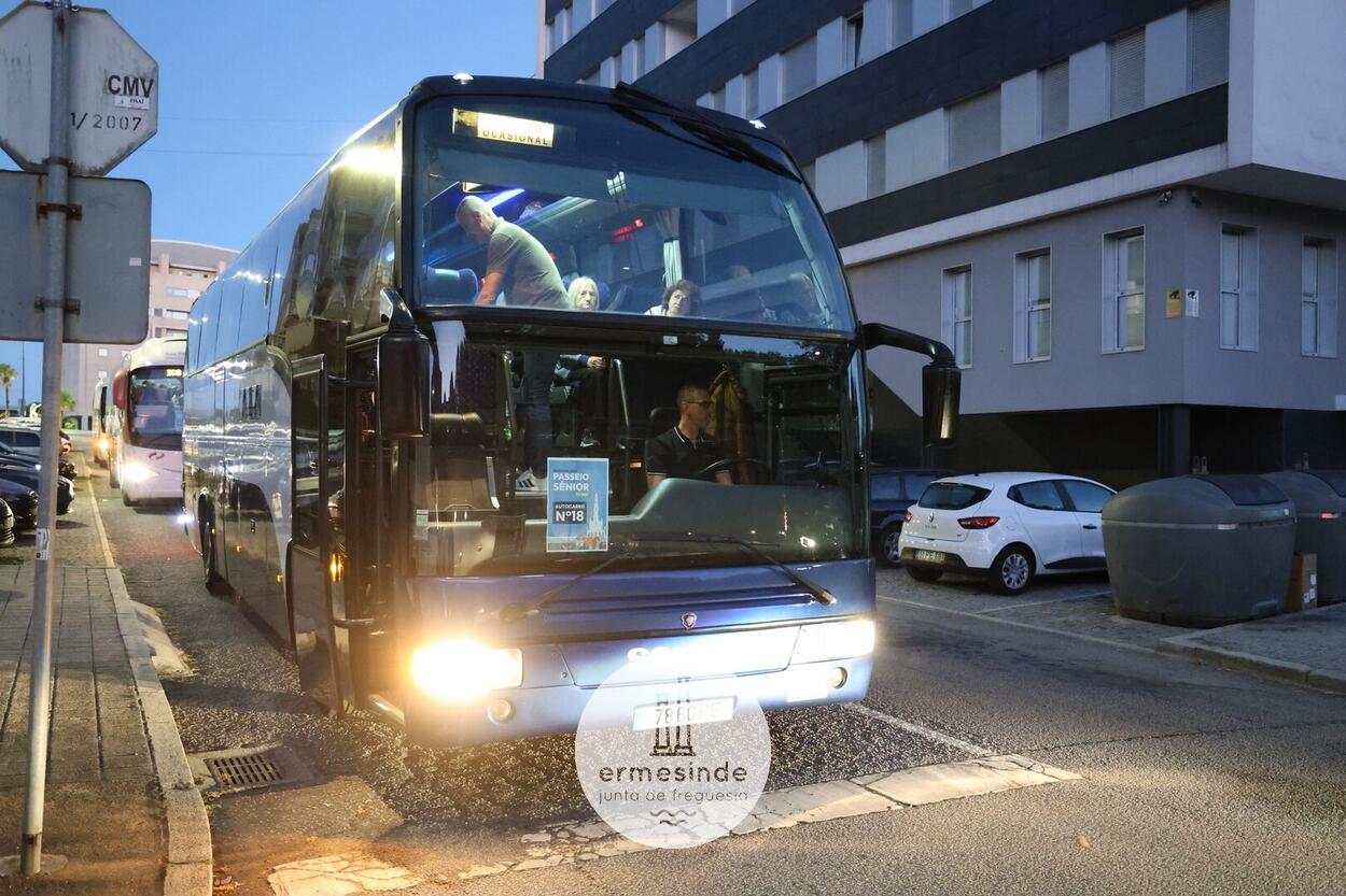 Ao raiar do Sol o Presidente da Junta de Freguesia de Ermesinde subiu a cada um, dos 15 autocarros, para desejar boa viagem aos cerca de 800 Ermesindenses inscritos no Passeio Sénior.
