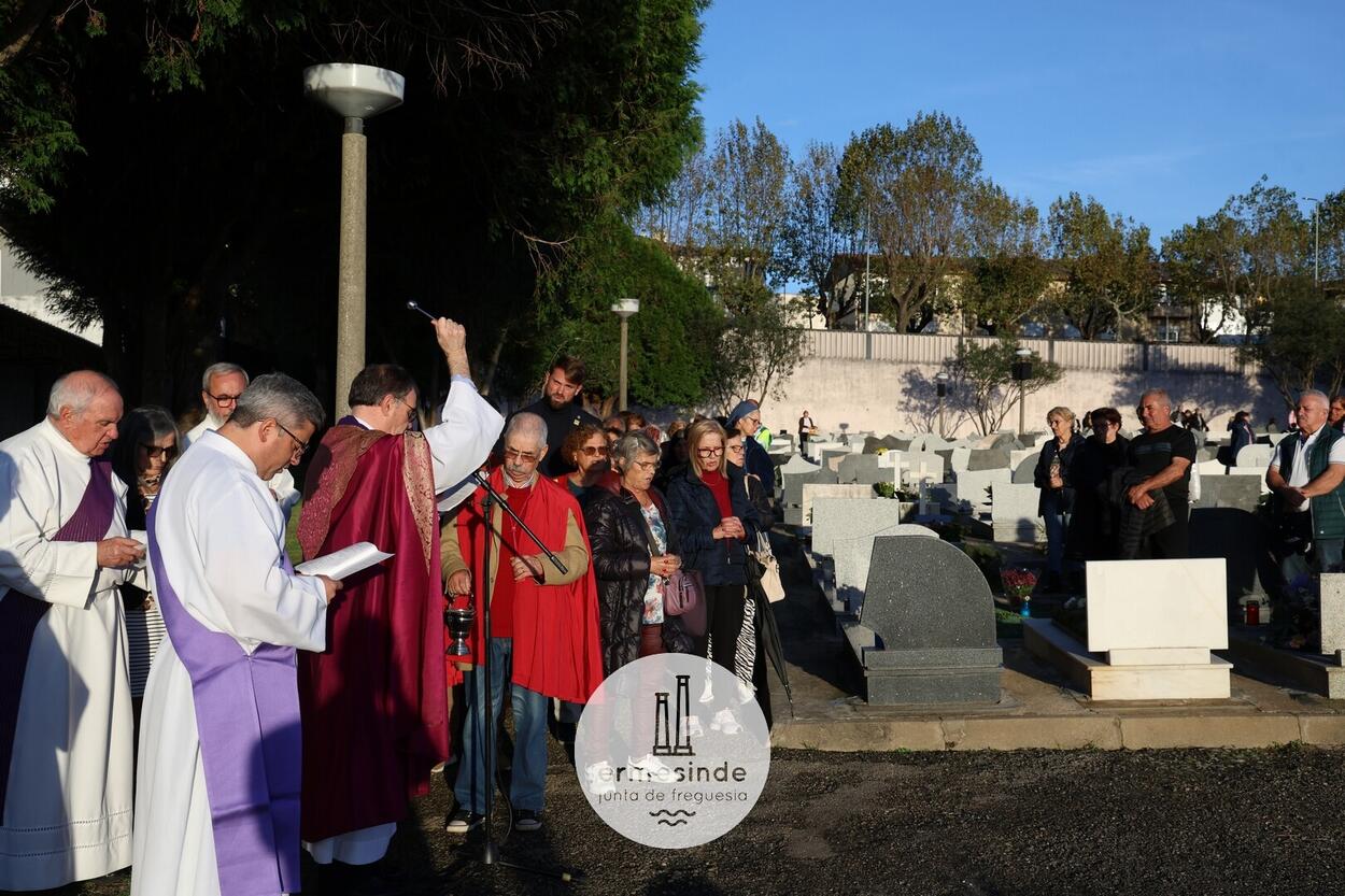 Finalizada a missa e com o Sol a brilhar, a procissão rumou ao cemitério, onde centenas de pessoas, na sua grande maioria aguardavam junto das sepulturas dos seus entes queridos a passagem da procissão para a Benção.