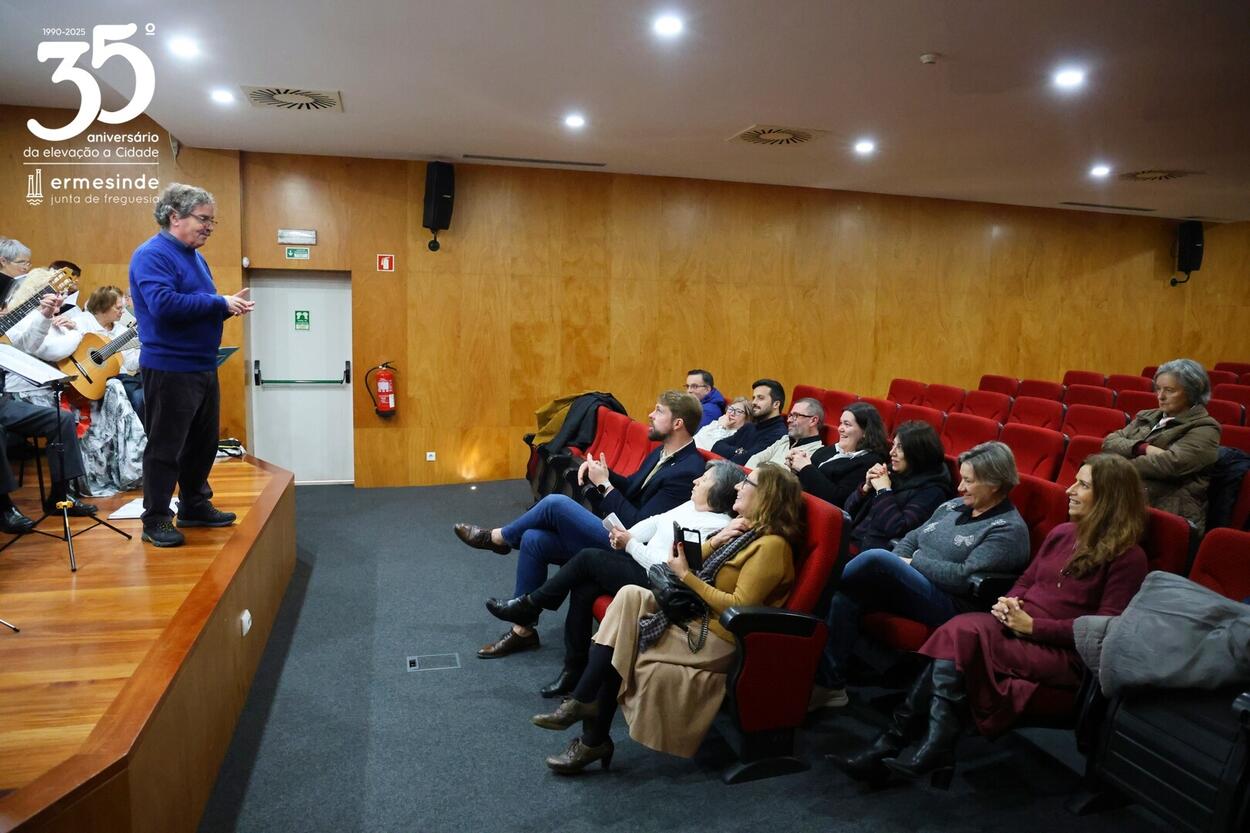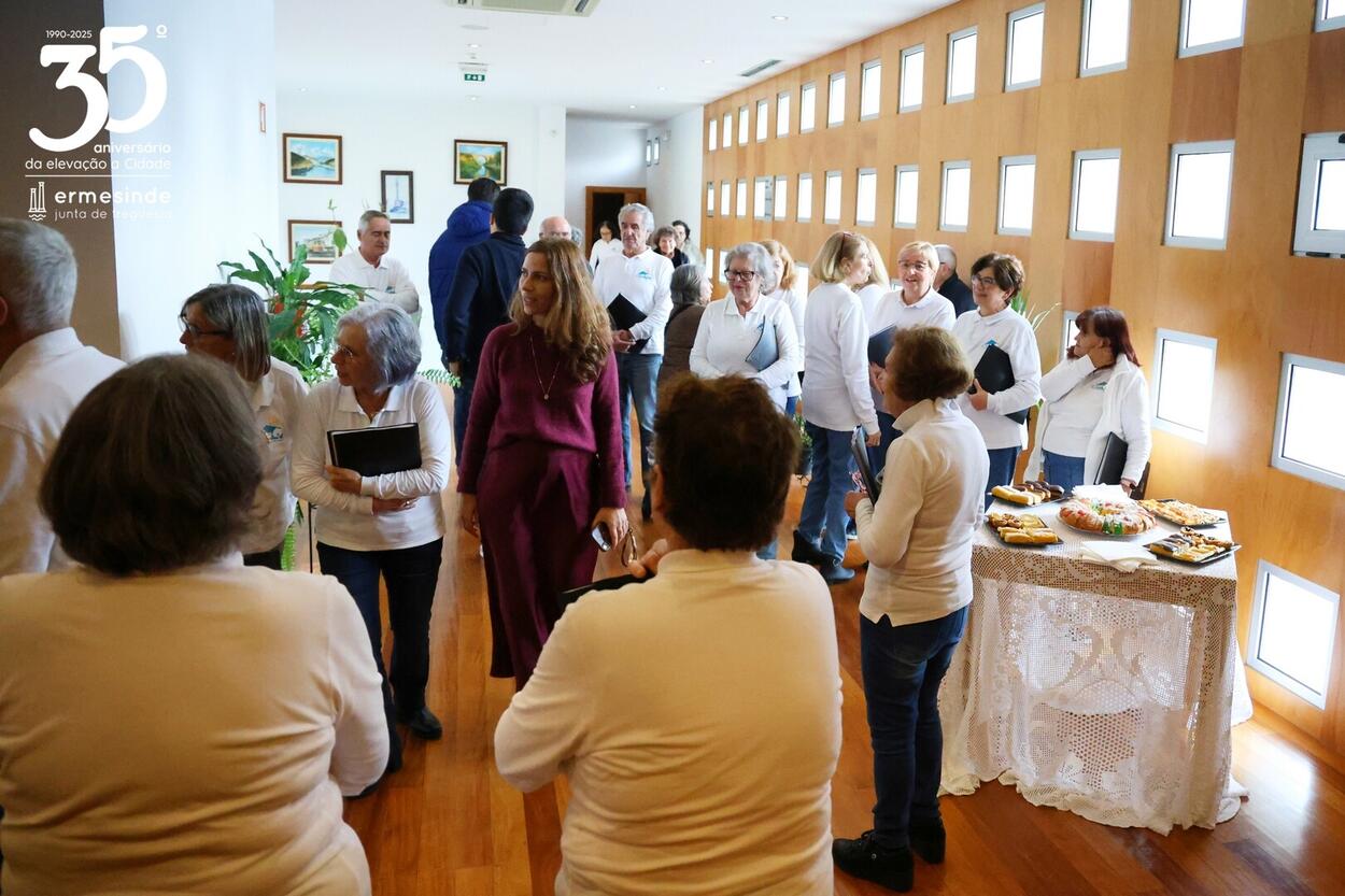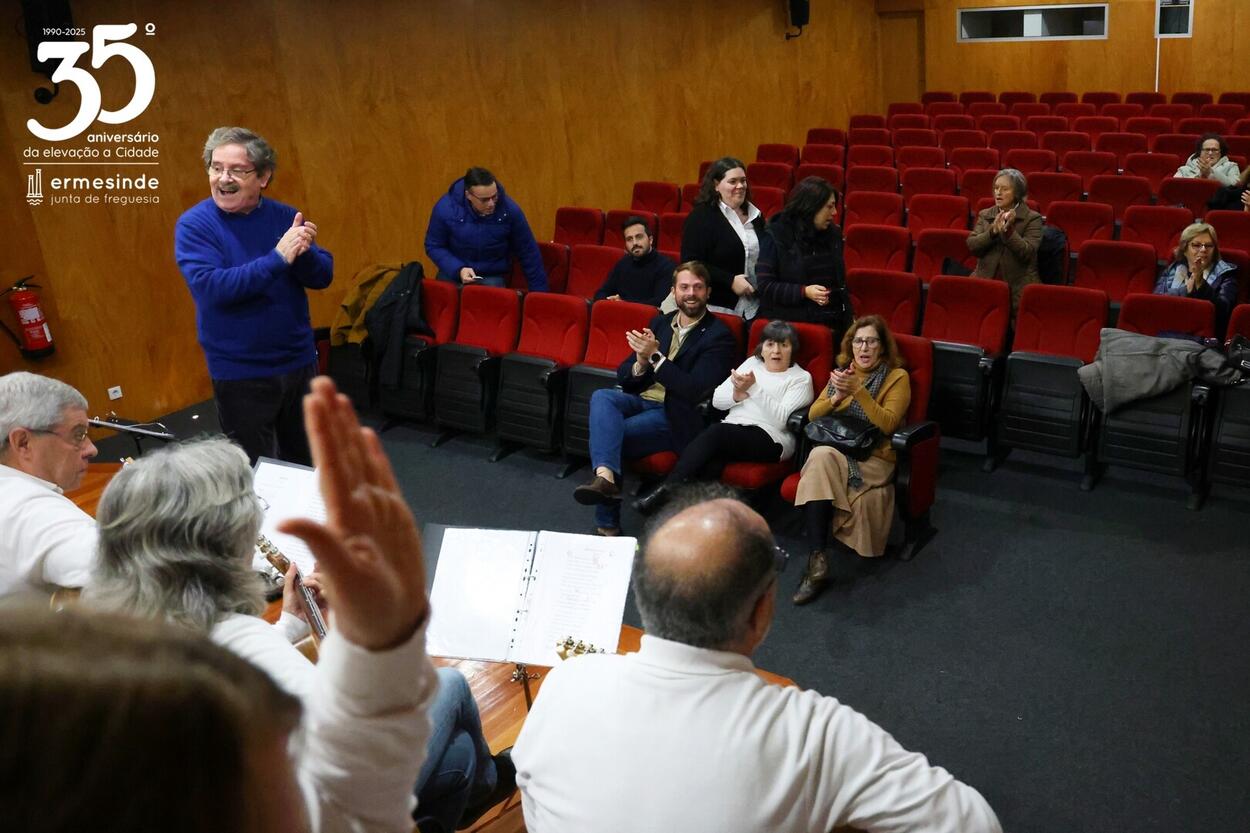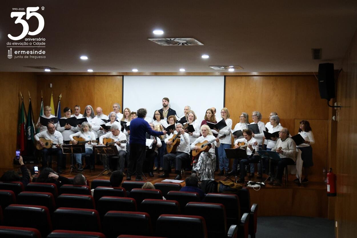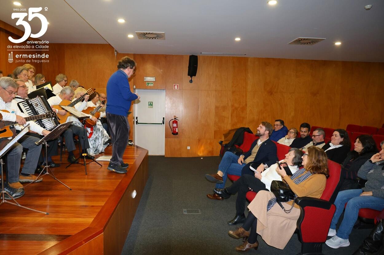 📍O momento teve lugar no Auditório da Junta da Freguesia de Ermesinde e para os receber estava o Presidente Miguel Oliveira, que desafiado pelo grupo aceitou participar num dos cântigos🎶.