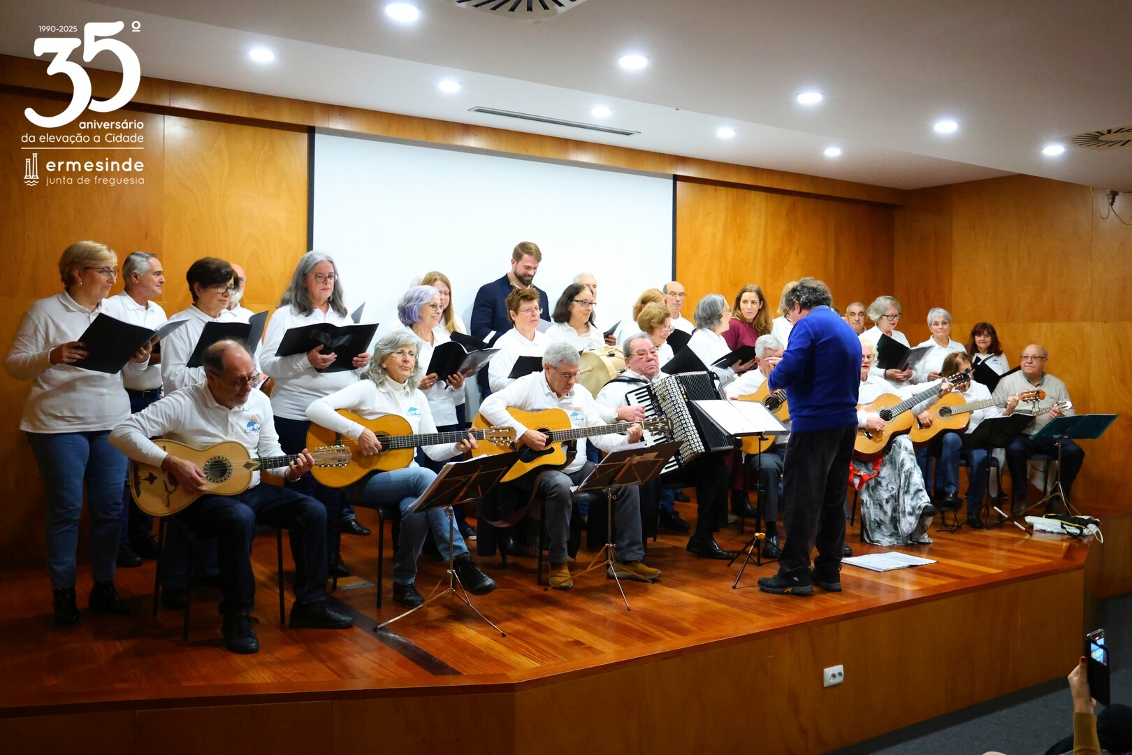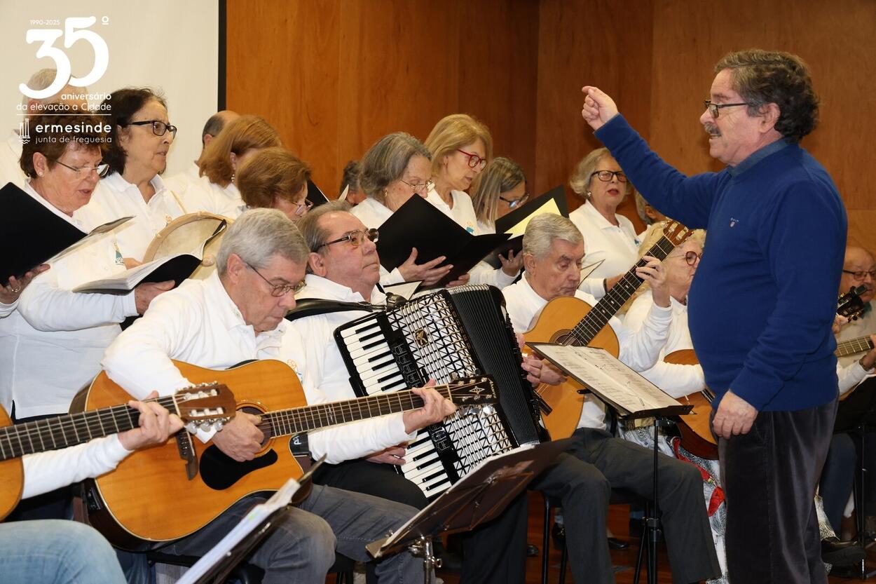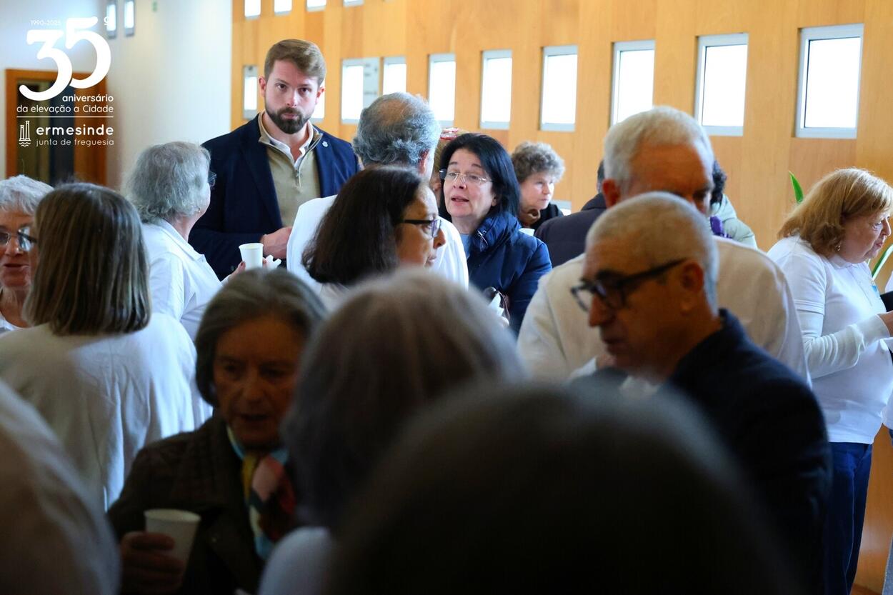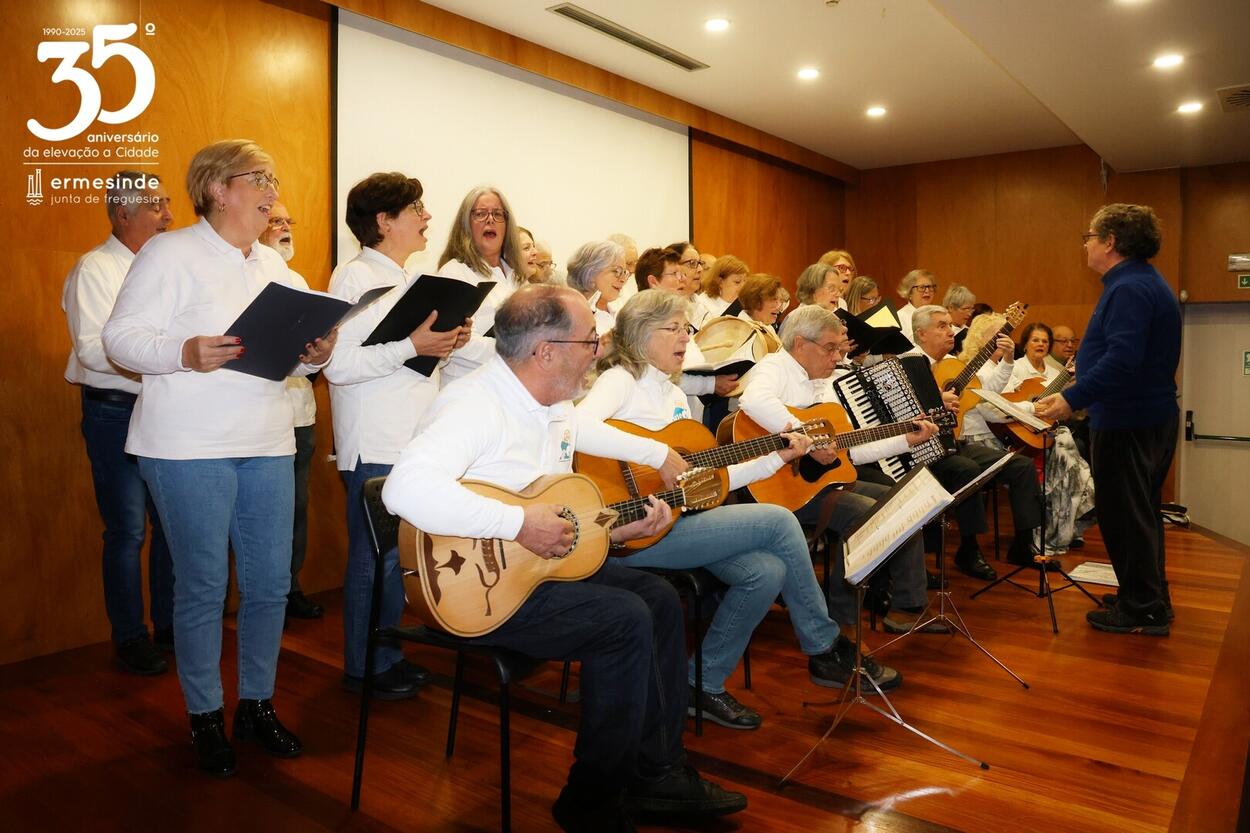 📍O momento teve lugar no Auditório da Junta da Freguesia de Ermesinde e para os receber estava o Presidente Miguel Oliveira, que desafiado pelo grupo aceitou participar num dos cântigos🎶.