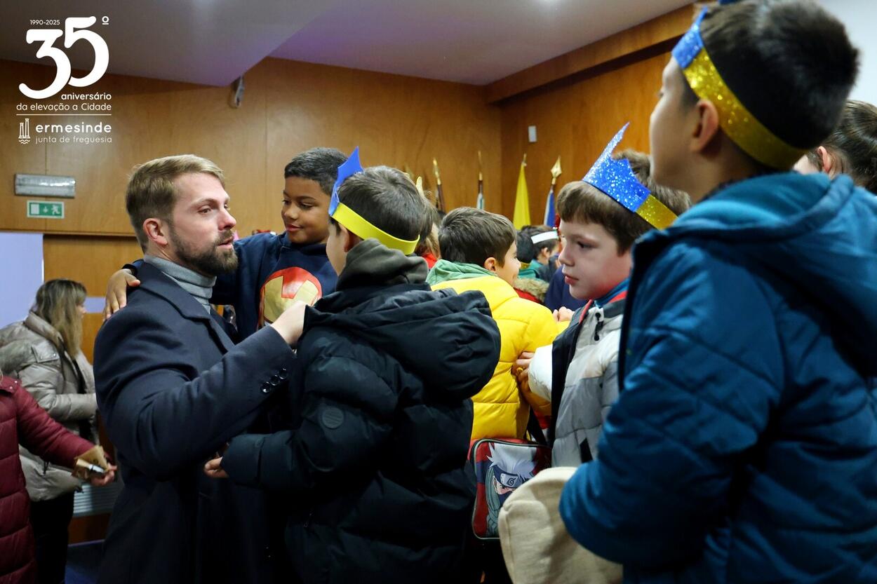 👑 Os Reis Magos da Escola da Gandra invadiram hoje o Auditório da Junta de Freguesia de Ermesinde, trazendo com eles cânticos de Reis, abraços e muito boa disposição, onde foram recebidos pelo Presidente Miguel Oliveira.