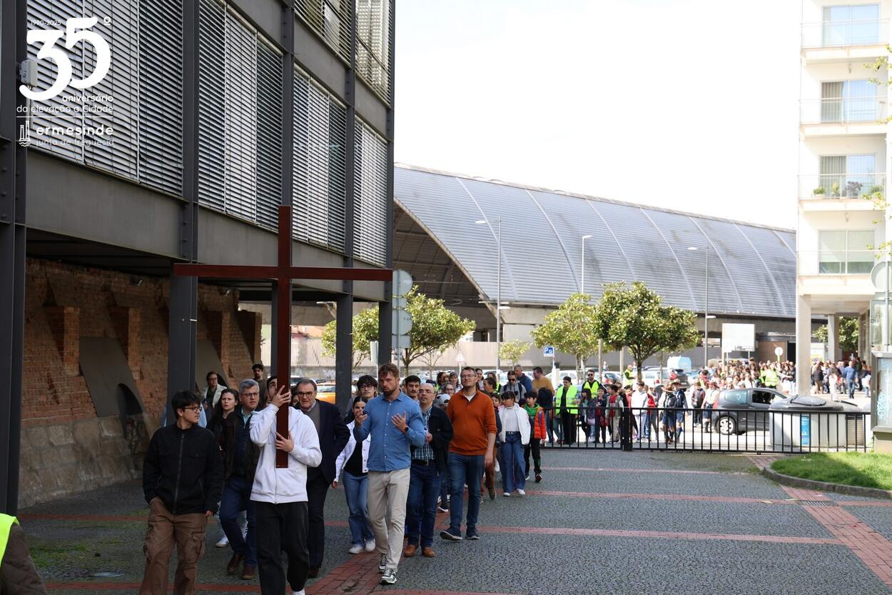 ℹA primeira paragem foi no Largo das Oliveiras, junto à Igreja do Bom Pastor onde se juntaram outros grupos de catequese em direção à igreja do Santuário da Santa Rita que se tornou pequena para todos os que se juntaram nesta caminhada de Fé.
