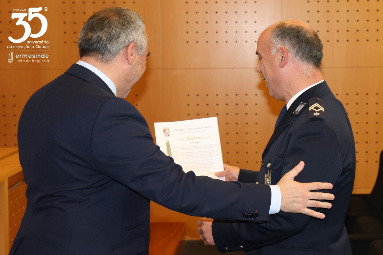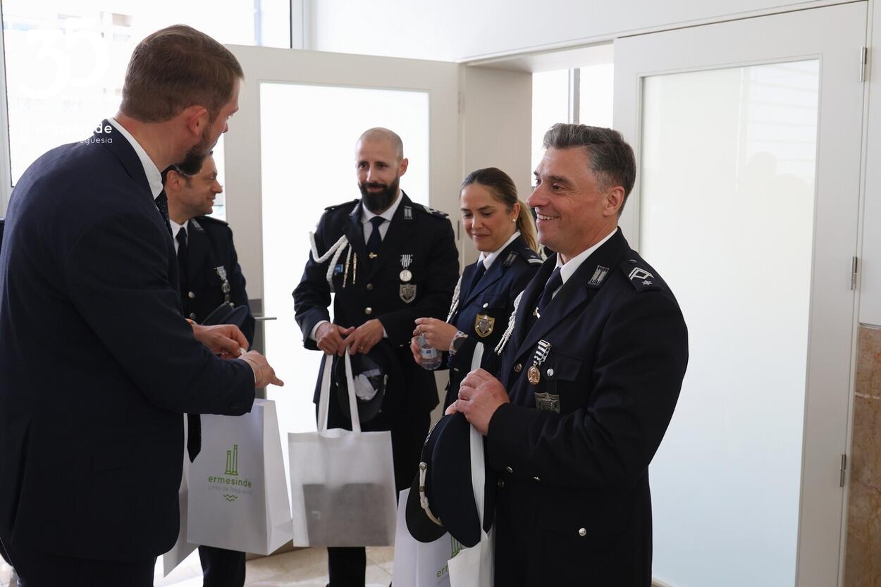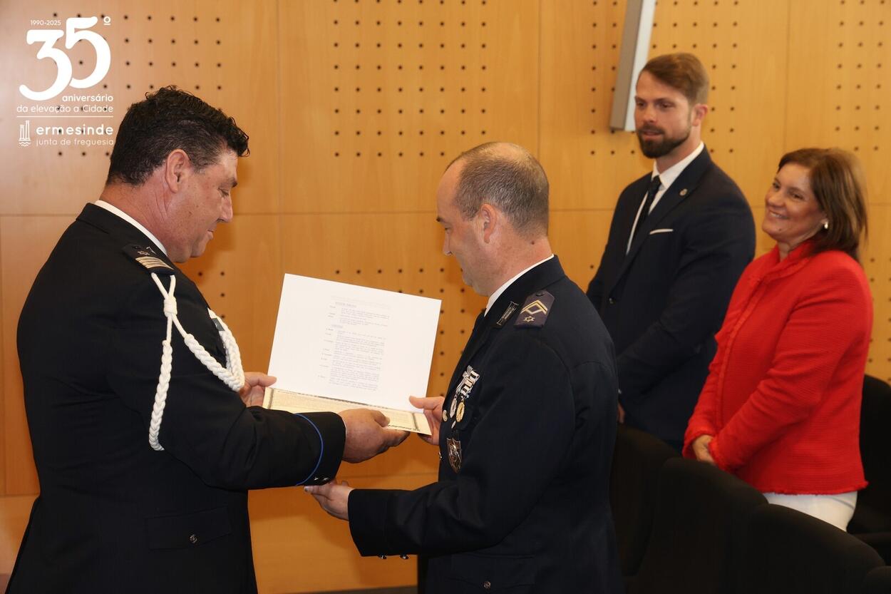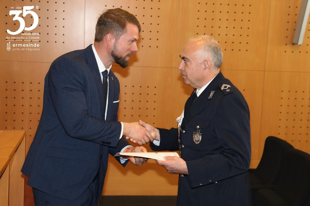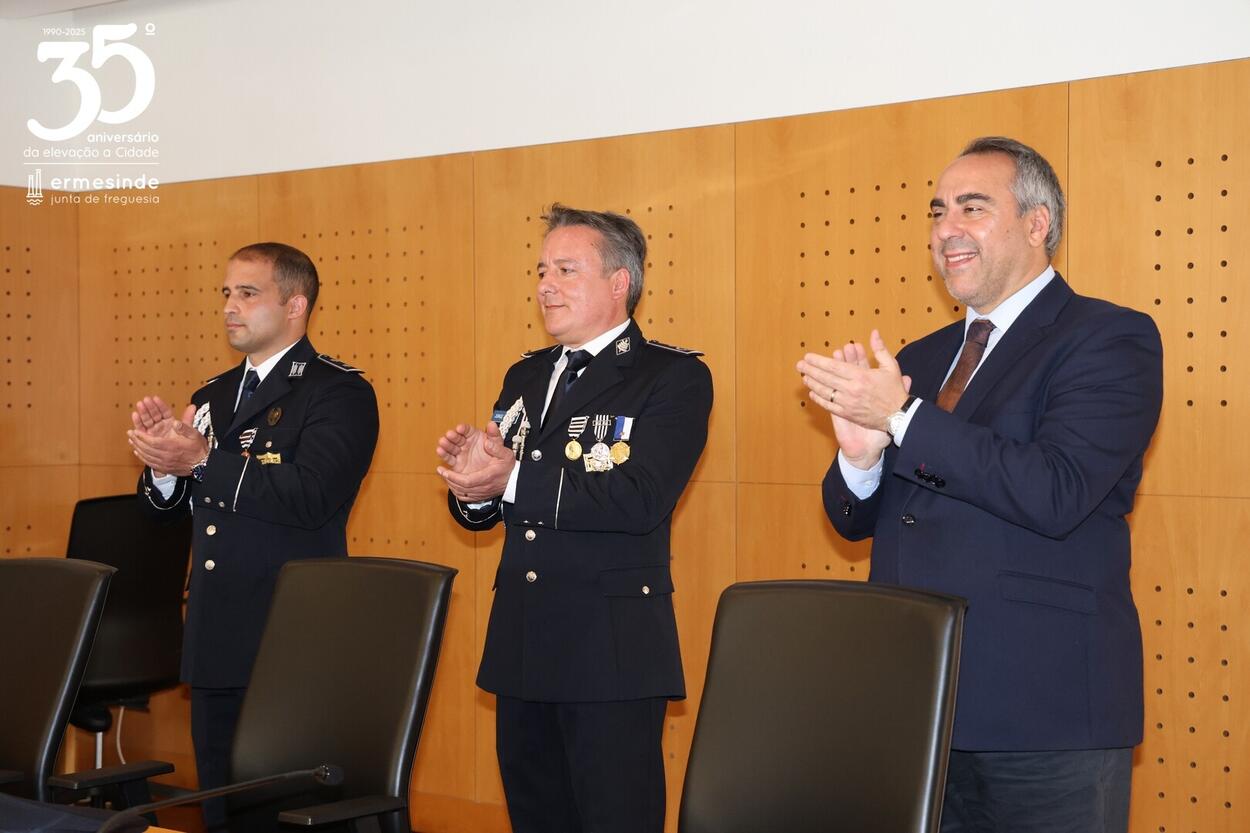 O Presidente Miguel de Oliveira, parabenizou todos os distinguidos e deixou em nome da Junta da Junta da Freguesia de Ermesinde na pessoa do Sr. Comandante da Esquadra de Ermesinde, Sr. Subcomissário José Sousa, o seu agradecimento a todo o efetivo da esquadra pelo trabalho e dedicação que diariamente empregam pela e na Cidade de Ermesinde.