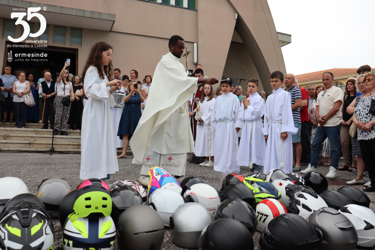 O dia começou com a receção aos motards e com um belo passeio pela nossa cidade de #Ermesinde. Várias atividades decorreram ao longo do dia, onde Miguel de Oliveira, presidente da JFE marcou presença. O ponto alto da iniciativa foi a tão esperada Benção dos Capacetes às 17h30, logo a seguir à eucaristia, na Igreja do Bom Pastor.
