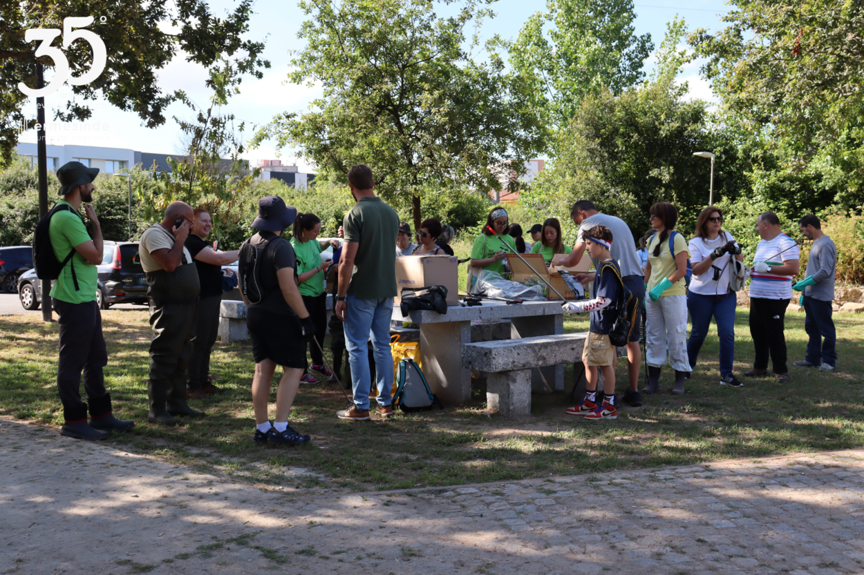 De sorrisos no rosto e mãos à obra, cerca de 30 voluntários juntaram-se, incluindo o presidente da Junta de Freguesia, Miguel de Oliveira, para despoluir o nosso LEÇA.
