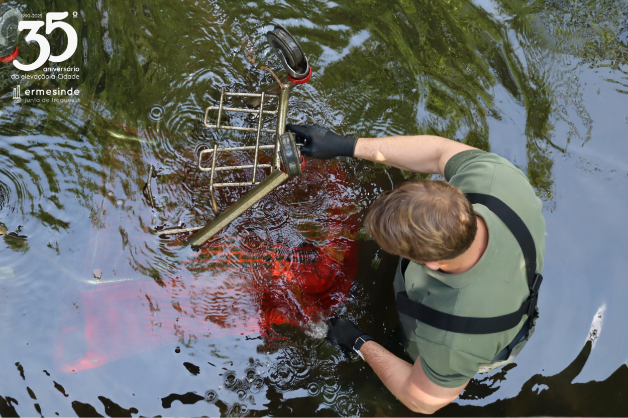 Em colaboração com a Associação Íris, a Junta Freguesia de Ermesinde levou a cabo, na manhã de sábado (7/06), uma ação de limpeza do Rio Leça, no Parque Soccer/Resineira.