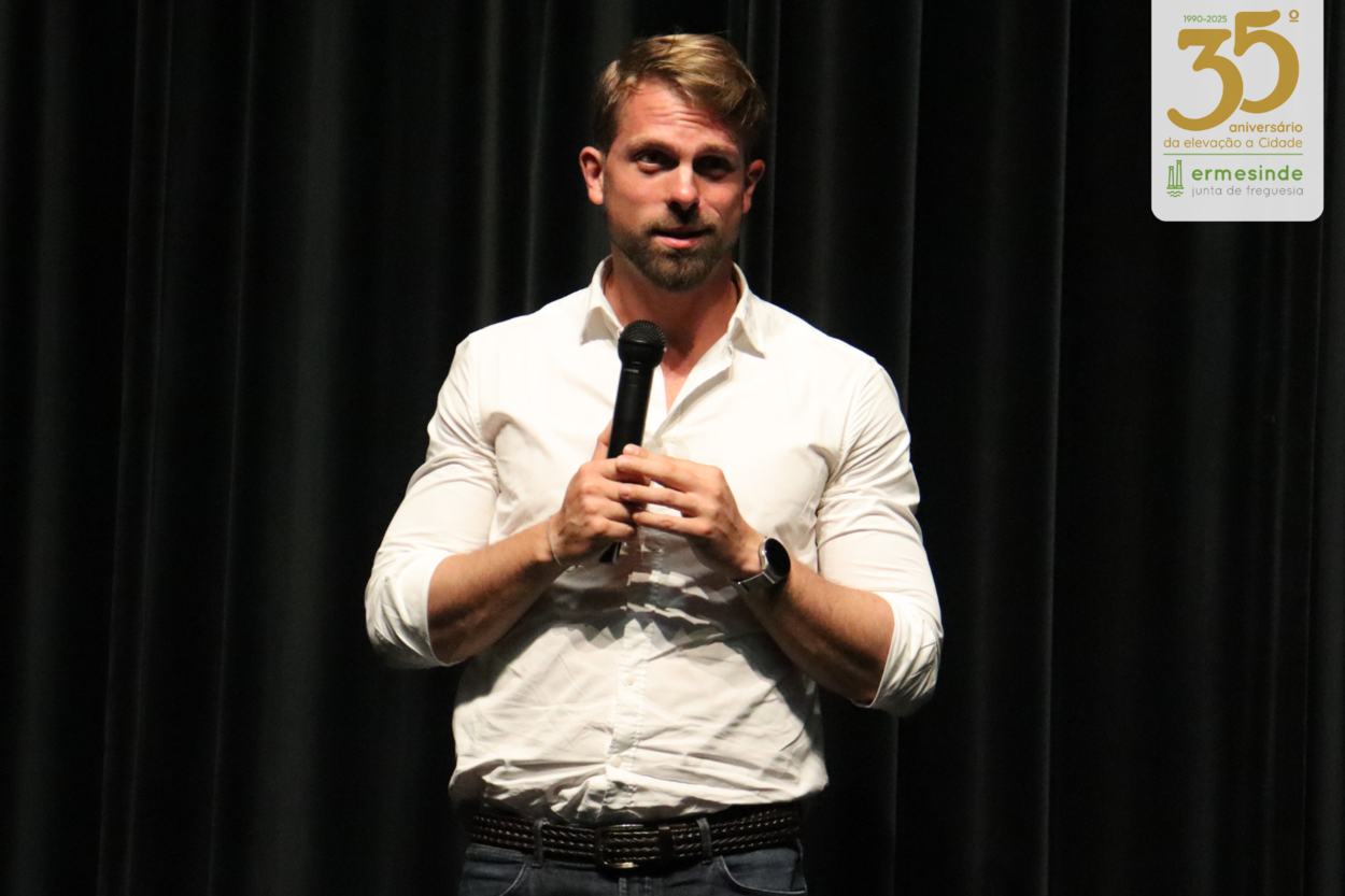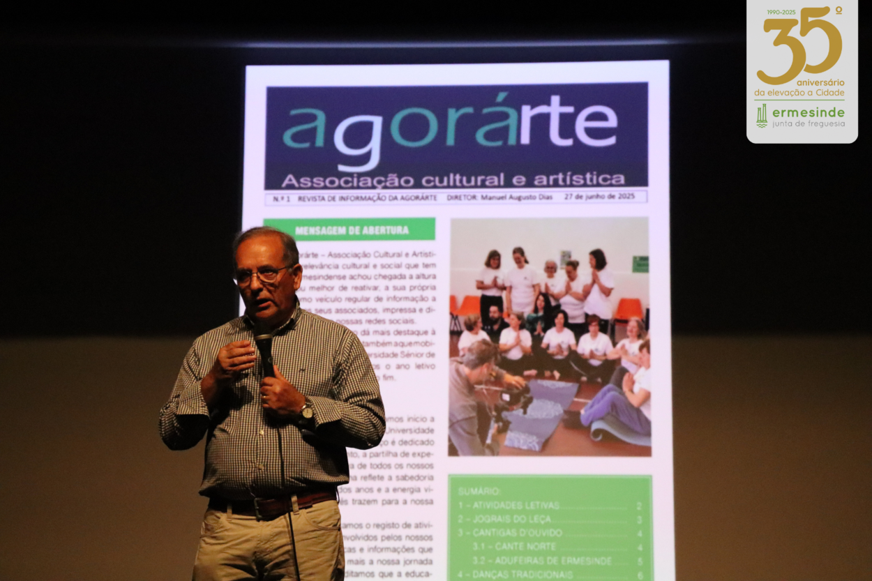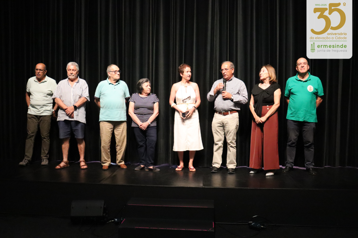 Miguel Oliveira, presidente da Junta da Freguesia de Ermesinde, acompanhado por Paulo Esteves Ferreira, vice-presidente da Câmara de Valongo e Orlando Rodrigues, vareador da Educação da CMV, estiveram presentes nesta sessão e onde os dois autarcas discursaram ao lado do Diretor da Associação Cultural e Artística, Manuel Dias.