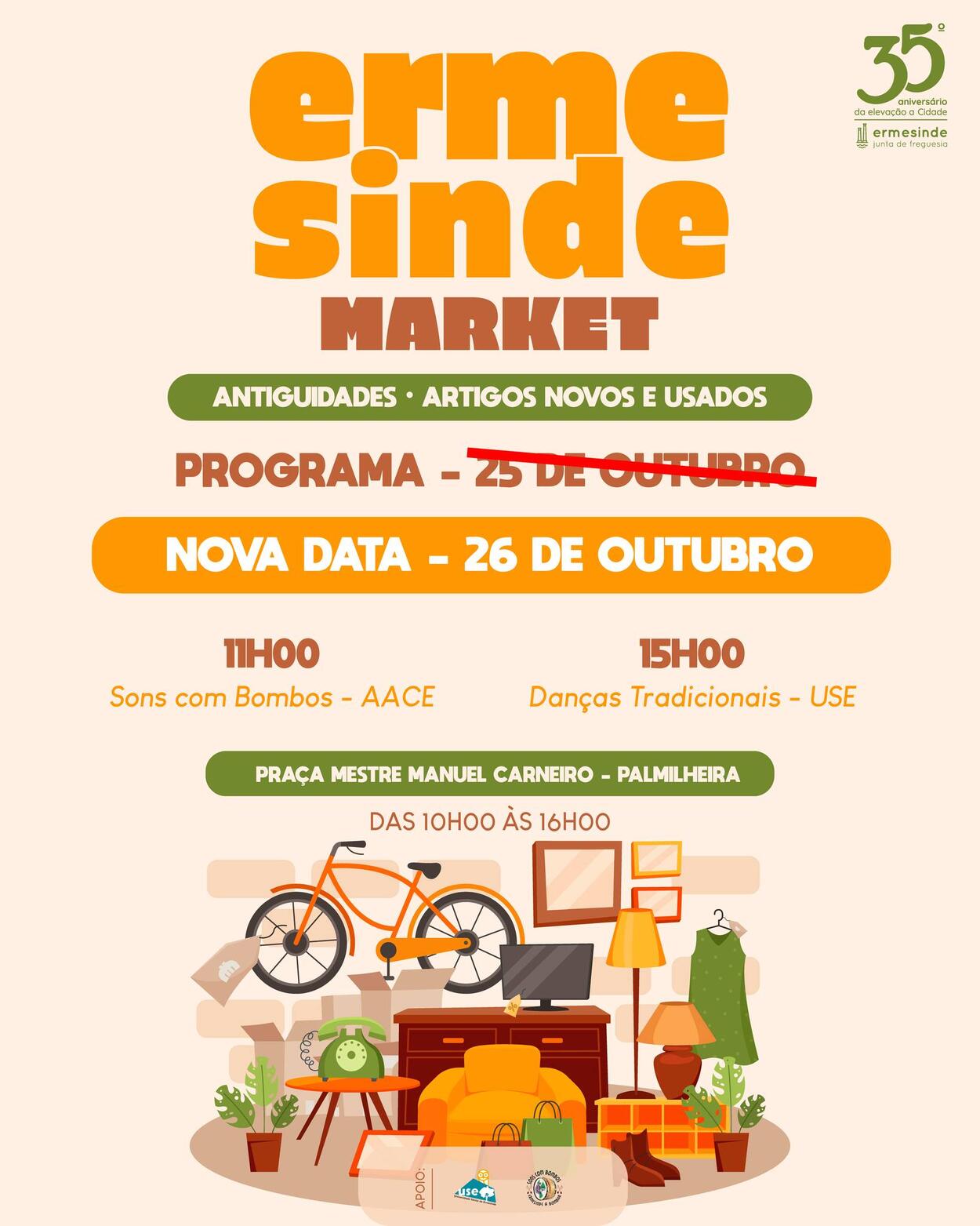 Devido às condições meteorológicas que se avizinham para o próximo sábado, o Ermesinde Market adiou o seu regresso para o próximo domingo, 𝟐𝟔 𝐝𝐞 𝐨𝐮𝐭𝐮𝐛𝐫𝐨, à Praça Mestre Manuel Carneiro (conhecida como Praça da Palmilheira), entre 10h00 e as 16h00.