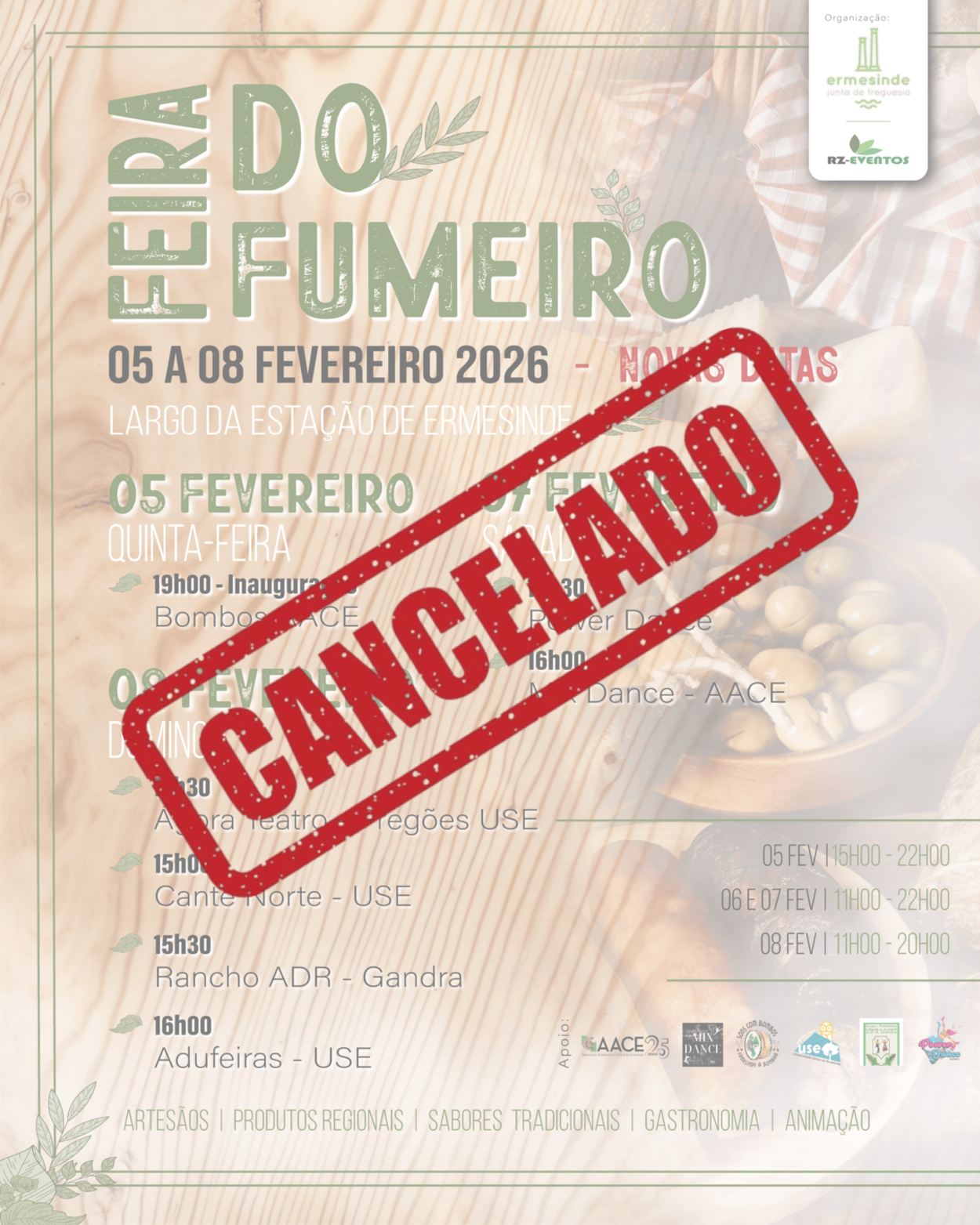 Devido às condições climatéricas adversas que se fazem sentir nos próximos dias, e após avaliação cuidadosa de todas as condições necessárias à realização do evento, a Junta da Freguesia de Ermesinde decidiu cancelar a Feira do Fumeiro 2026.