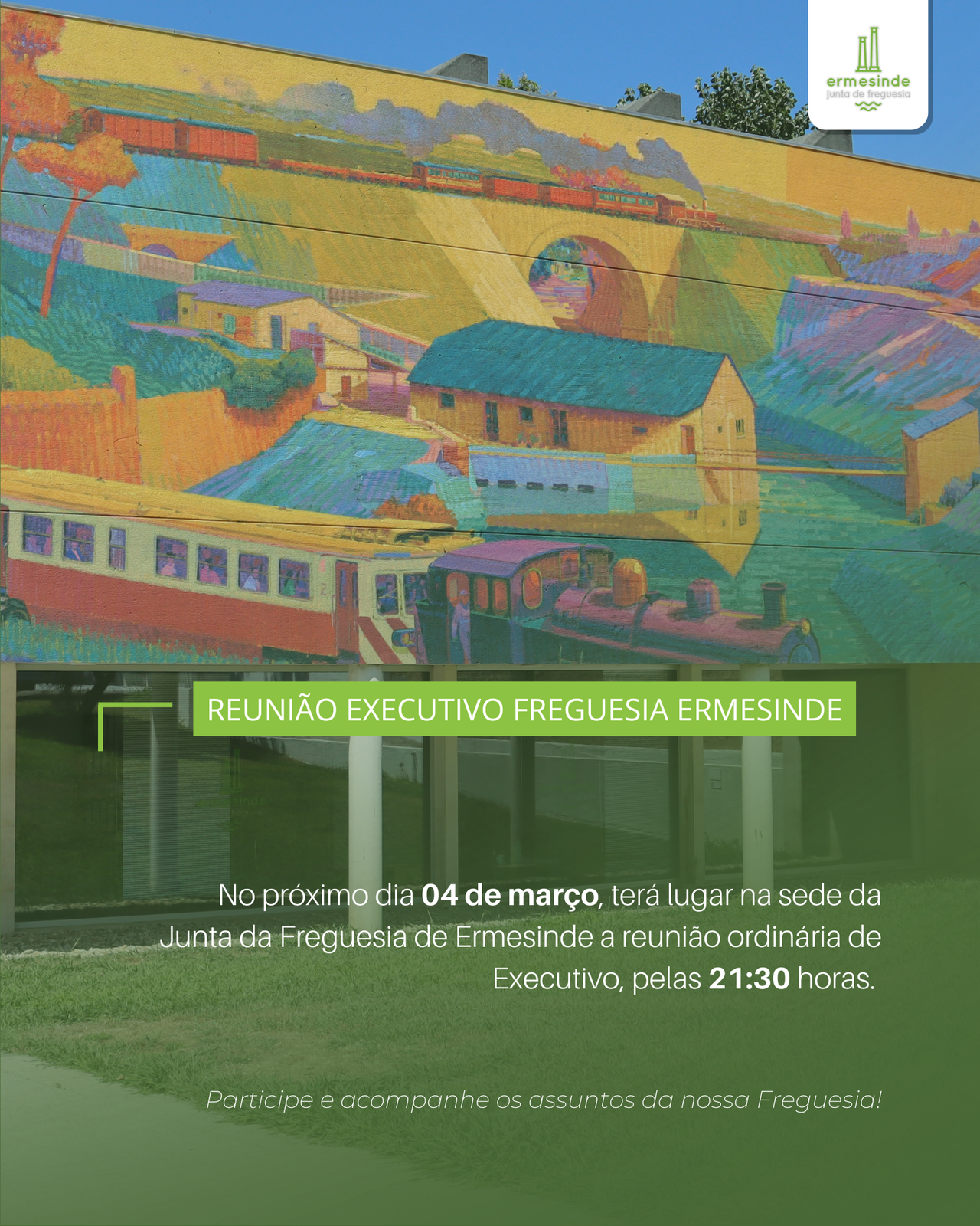 O Executivo da Junta da Freguesia de Ermesinde vai reunir-se na próxima quarta-feira, 04 de março 2026, às 21h30 na sede da autarquia.