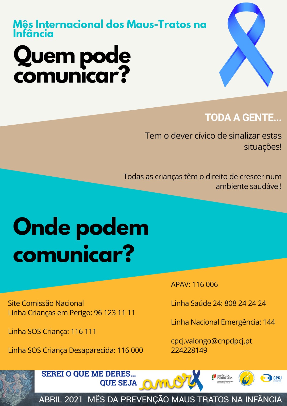Neste período atípico, associado à pandemia COVID-19, mais se justifica a consciencialização da sociedade para o seu papel na prevenção dos maus tratos infantis.
