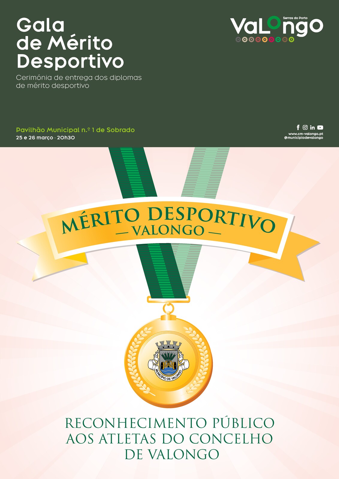 O Município de Valongo vai realizar, nos dia 25 e 26 de março de 2023, a Gala de Mérito Desportivo - Cerimónia de entrega dos diplomas de mérito desportivo, no Pavilhão Municipal de Sobrado N.º 1.