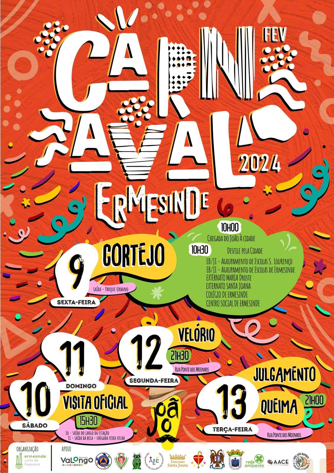 De 9 a 13 de fevereiro a Cidade de Ermesinde Festeja o Carnaval, vão ser 5 dias de muita cor e animação, desde o desfile com as escolas a tradicional Queima do João não vão faltar motivos para reunir a família e amigos e divertir-se com o programa que preparamos para si.