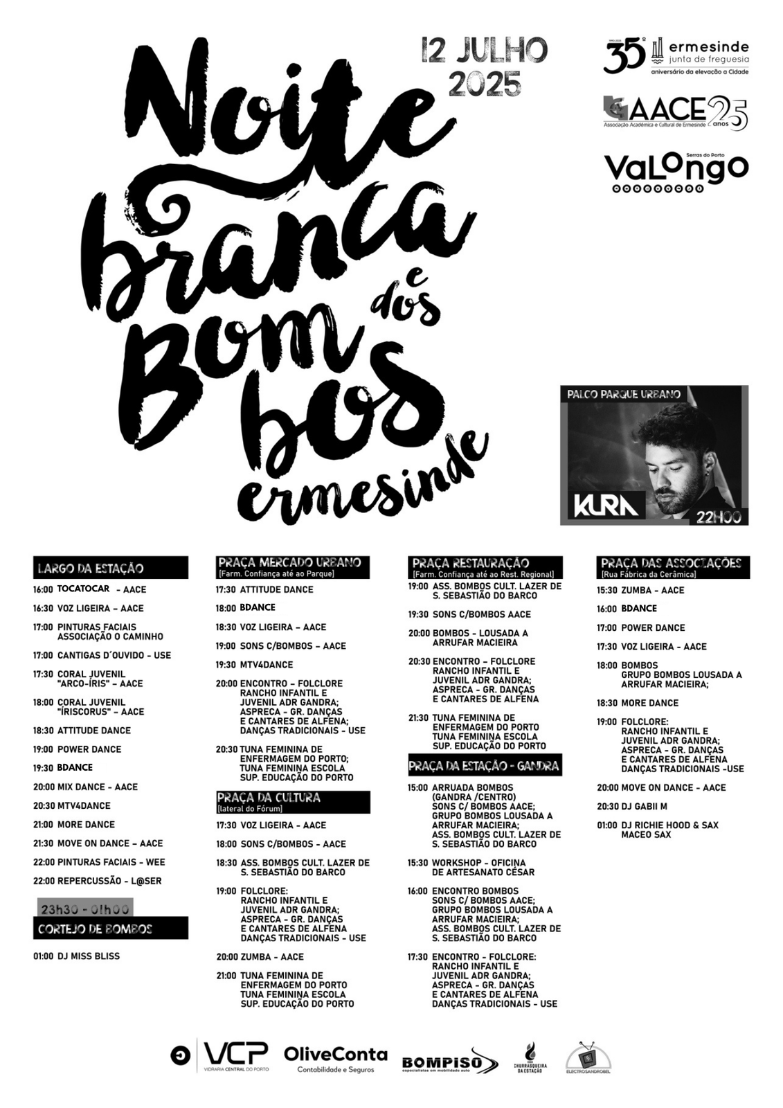 • A aguardada atuação do DJ Kura, um dos maiores nomes da música eletrónica nacional, às 22h00 no Palco Parque Urbano (Concha).