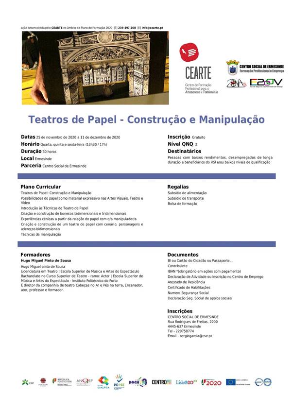 No âmbito dos projetos ZONA Z E7G e E2OV, o Cearte e o Centro Social de Ermesinde vão desenvolver uma ação de formação "Teatros de Papel - Construção e Manipulação".