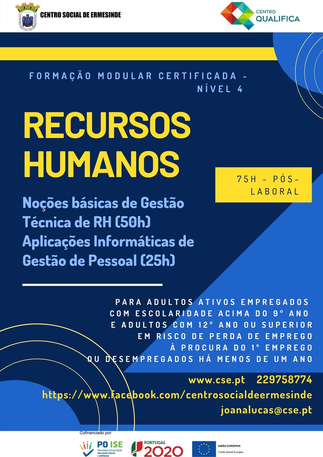 Formação Modular Certificada, dinamizada pelo Centro Social de Ermesinde, de nível 4.