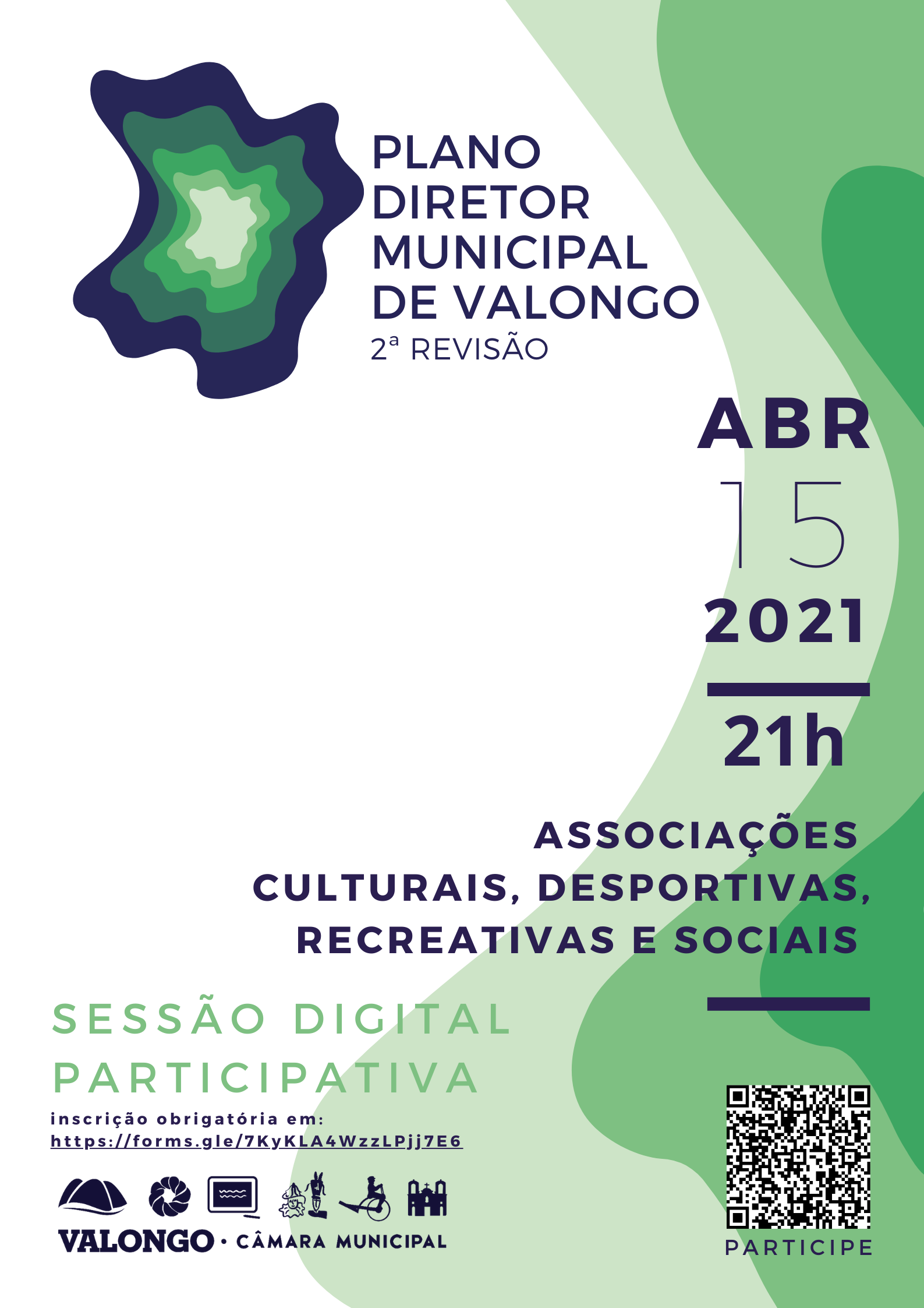 Participe na 2ª Revisão do PDM Valongo, dirigida ao tecido associativo concelhio, que decorrerá pela plataforma ZOOM no dia 15 de Abril pelas 21h, dinamizada pelo Laboratório L3P da Universidade de Aveiro.