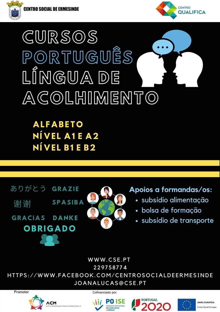 O Centro Social de Ermesinde, vai dar inicio em Setembro, em regime presencial (em Ermesinde), aos cursos de Língua Portuguesa para Imigrantes que não tenham como língua materna o Português.