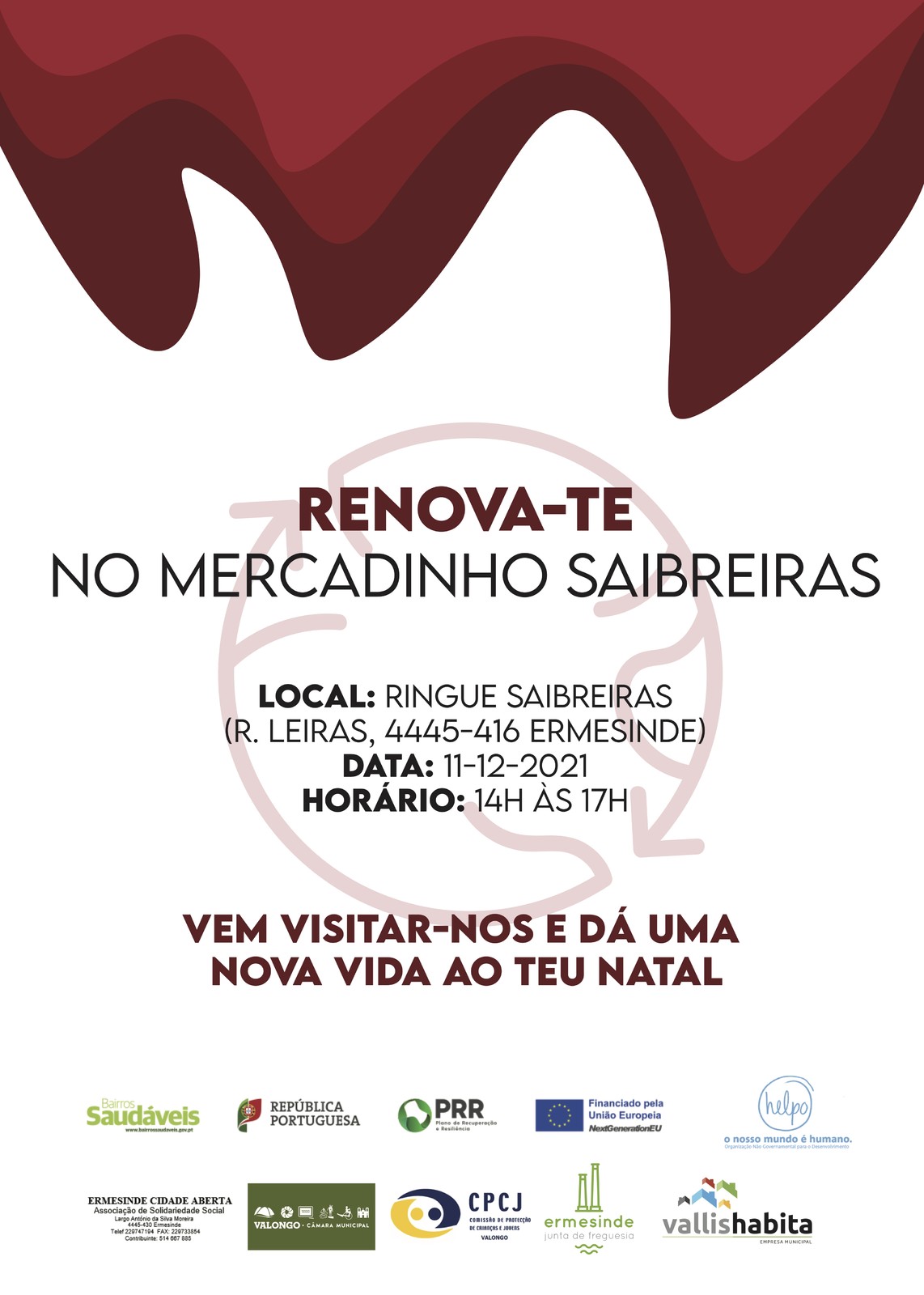 Ao abrigo da atividade "Pinta o Bazar Saibreiras" do projeto Saibreiras - Pintar o Futuro Maior, o primeiro mercado social realizar-se-á no próximo dia 11 de dezembro, entre as 14h e as 17h, no ringue do Empreendimento de Habitação Social das Saibreiras, em Ermesinde. Com base na economia circular são os moradores que ao longo dos meses anteriores entregam às crianças e jovens beneficiários do projeto os géneros que compõem o bazar e que possam ser adquiridos depois a preços simbólicos.