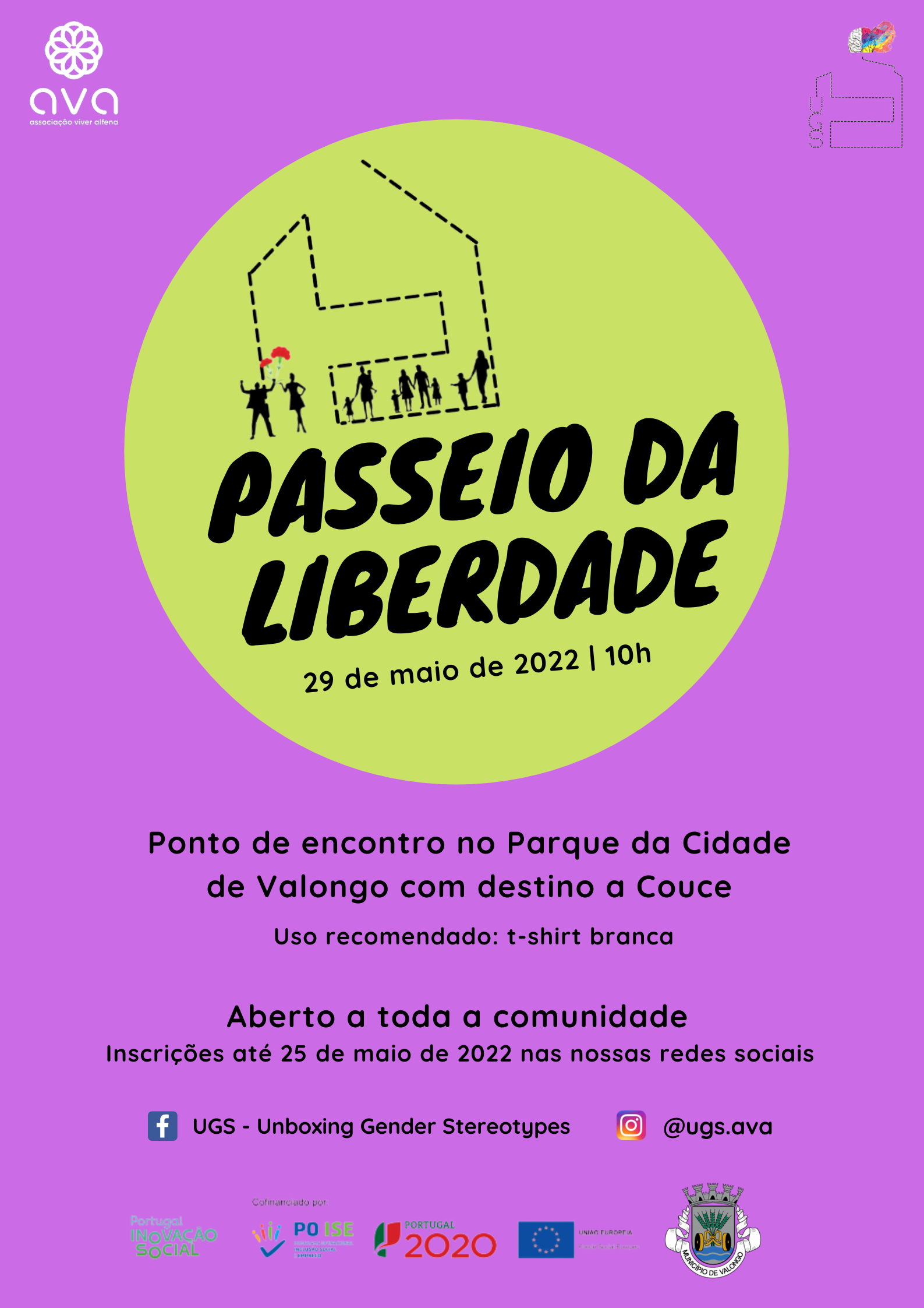 No âmbito das atividades propostas pelo Projeto UGS (Unboxing Gender Sterotypes), foi reagendado o Passeio da Liberdade para o dia 29 de Maio, pelas 10h, com partida do Parque da Cidade de Valongo e chegada à Aldeia de Couce.